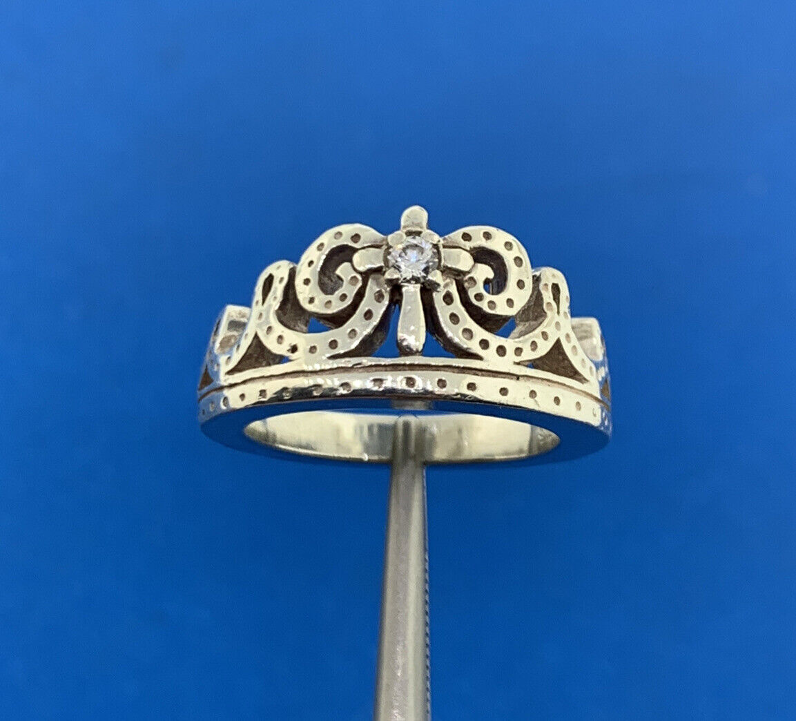 - Retro Sterling Silver 925 Cubic Zirconia CZ Princess Queen Diva Crown Band Ring