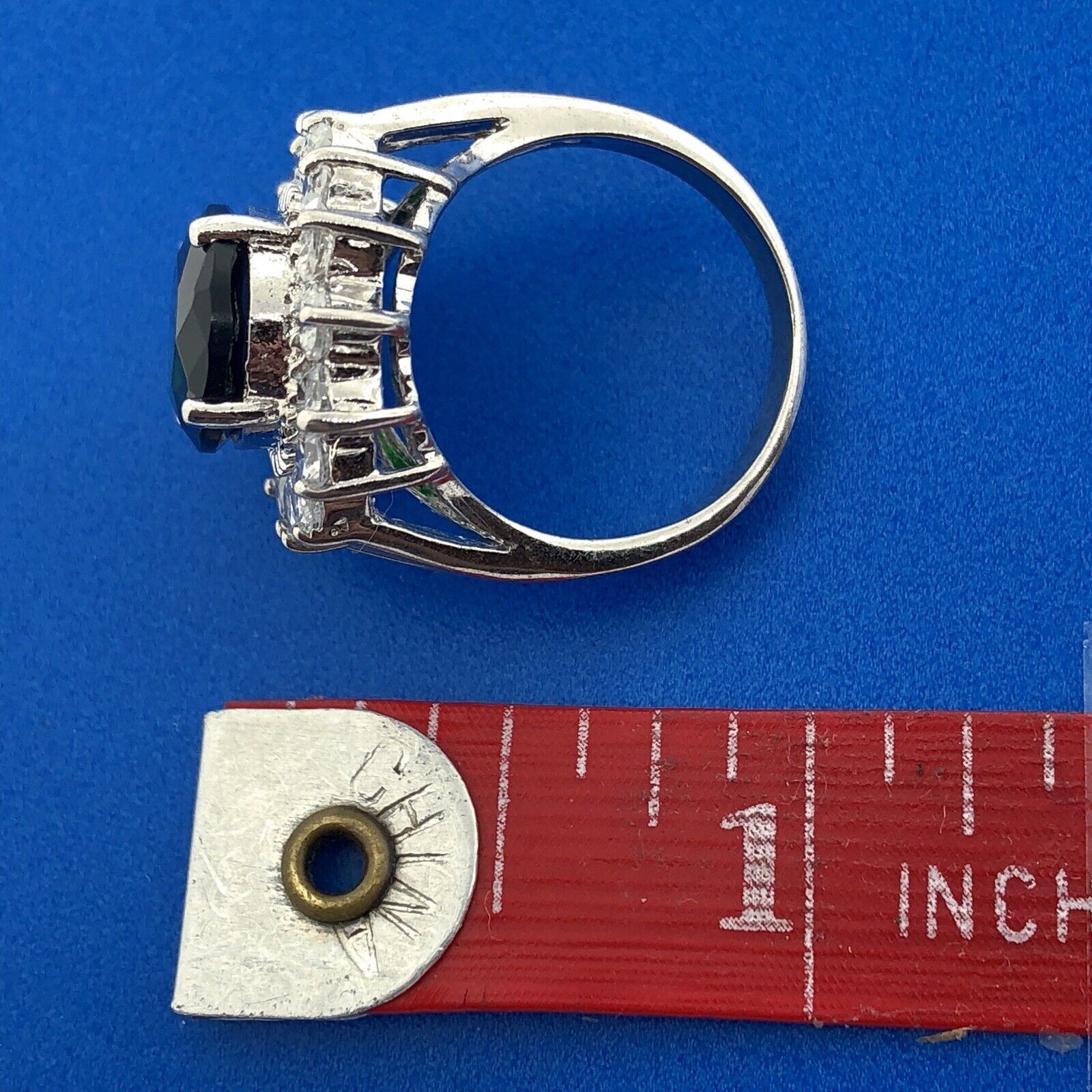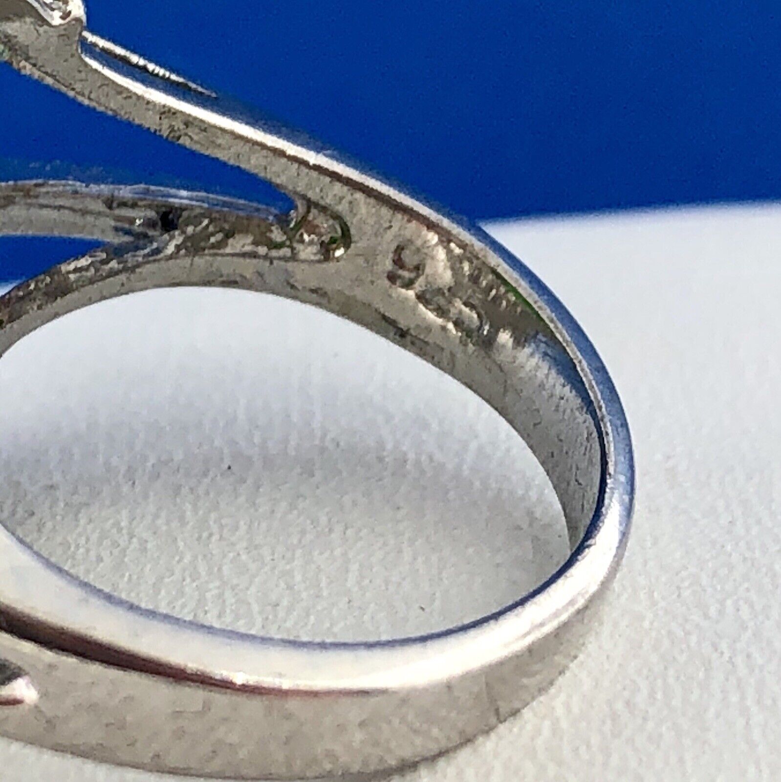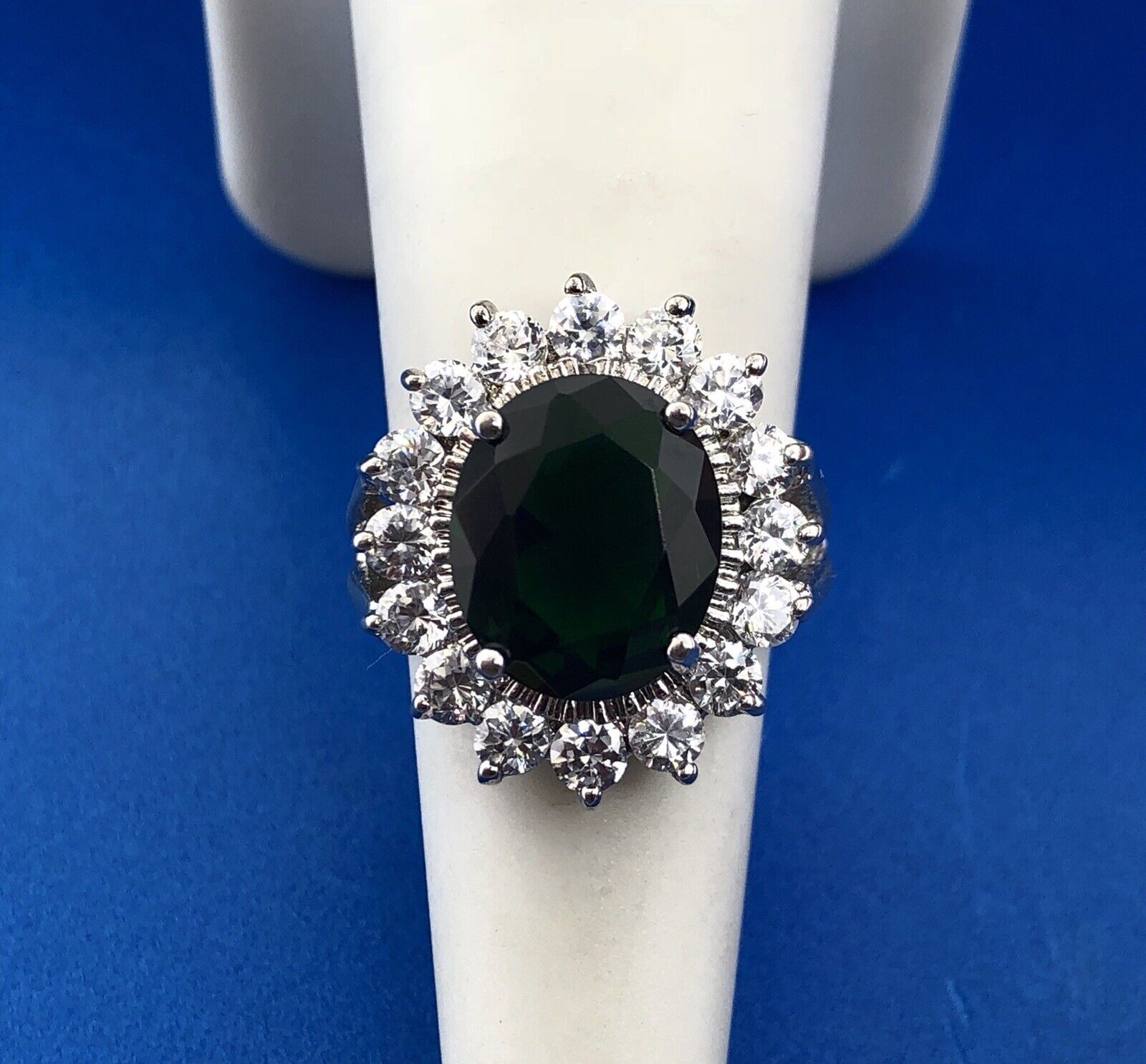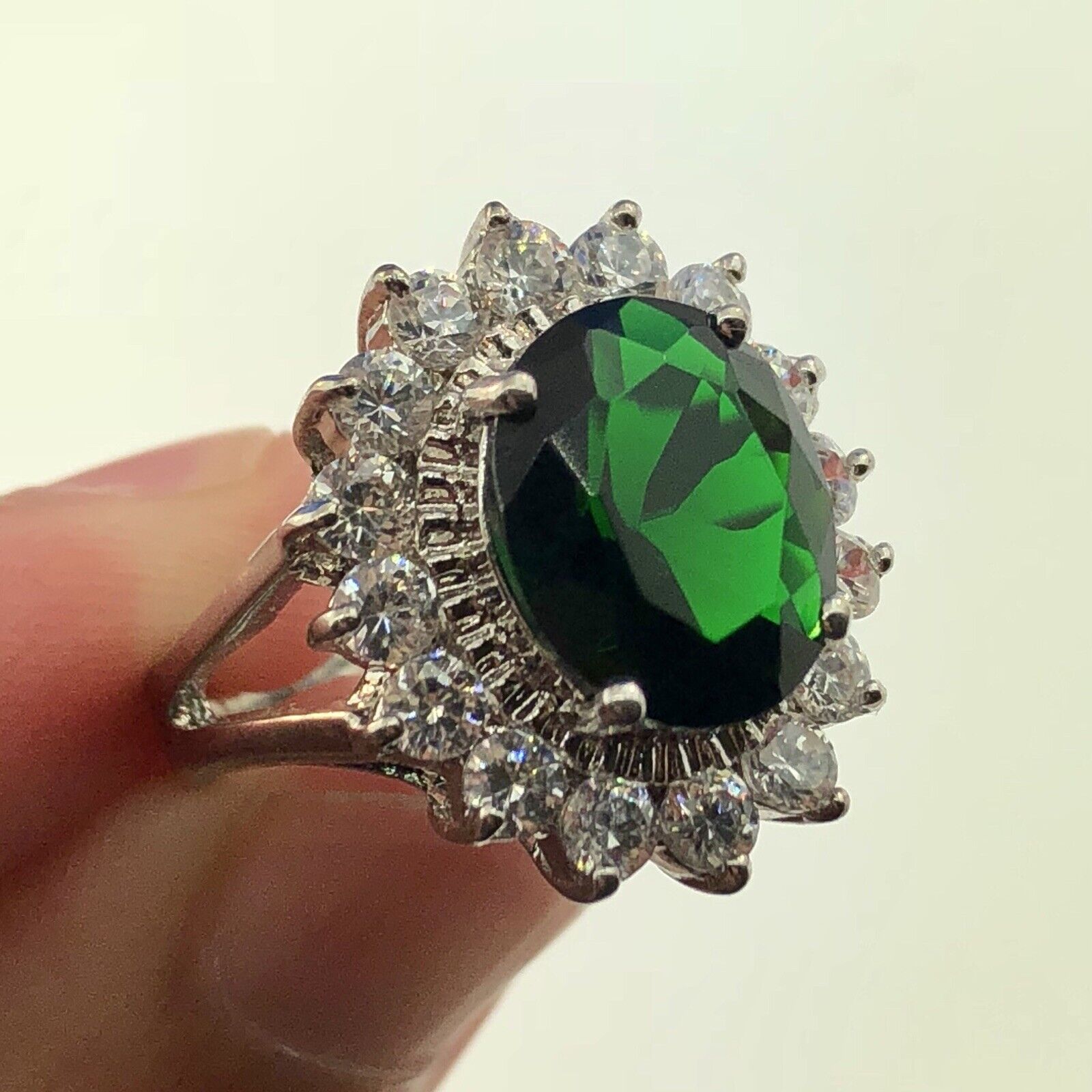 - Retro Sterling Silver 925 Green White CZ Statement Fashion Cocktail Ring