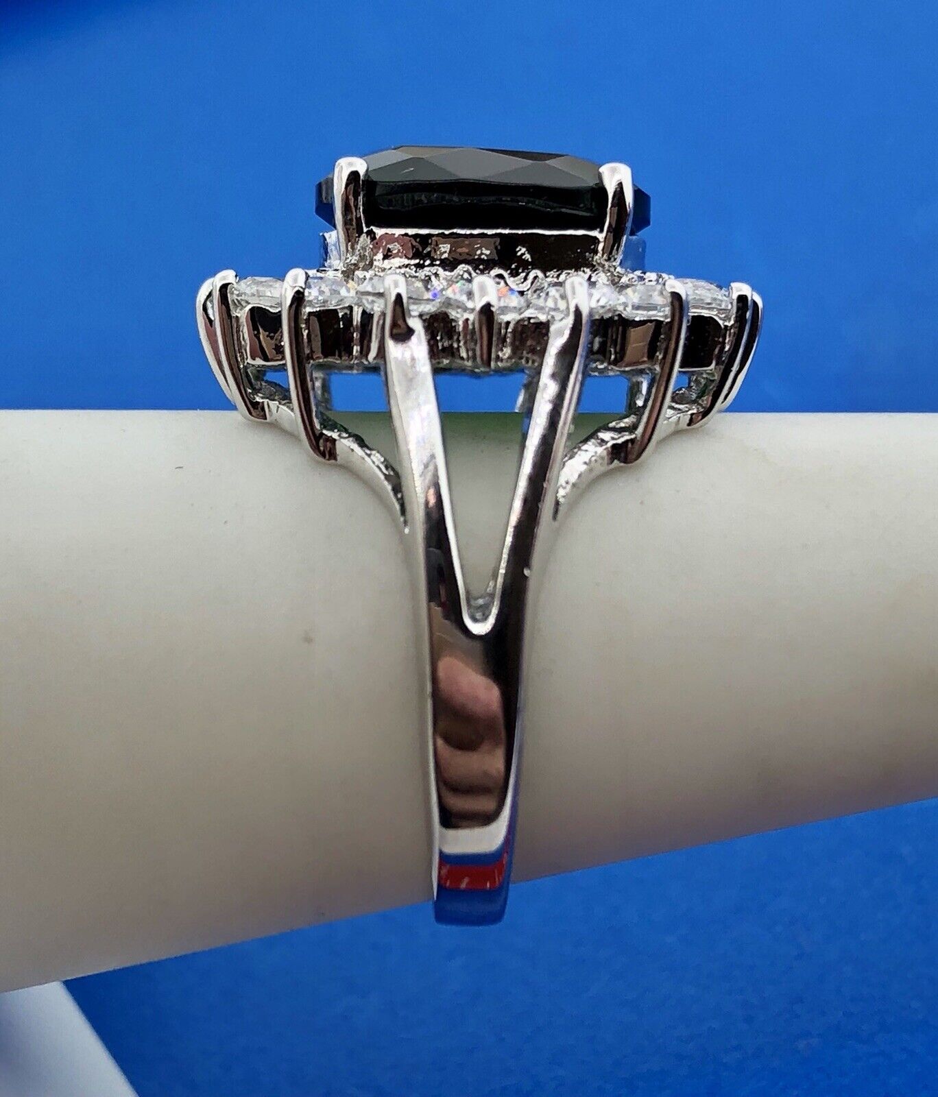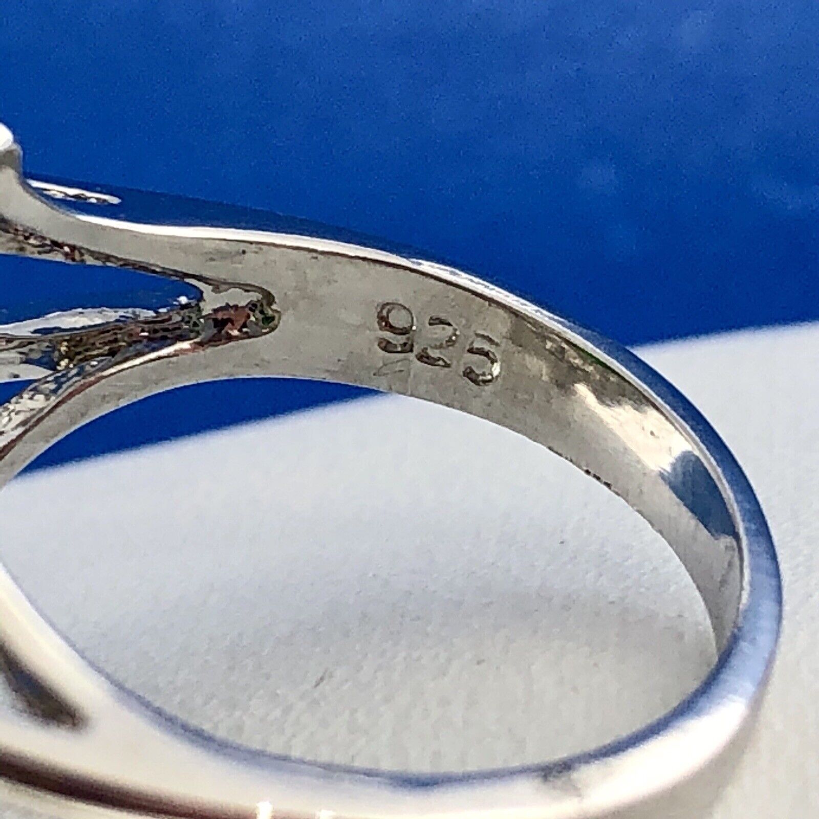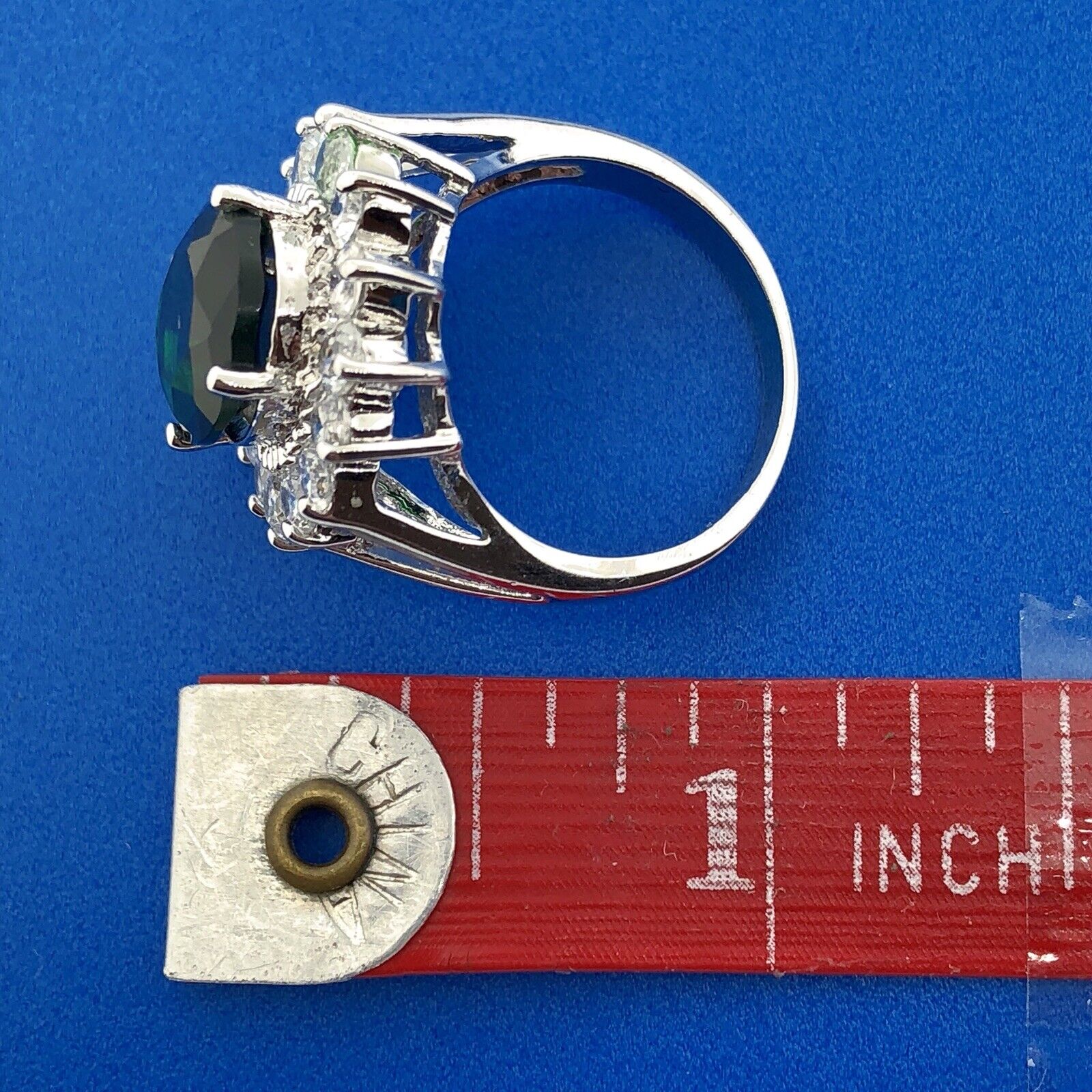 - Retro Sterling Silver 925 Green White CZ Statement Fashion Cocktail Ring