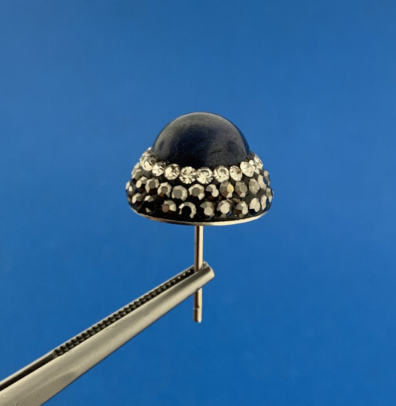 - Retro Sterling Silver Lapis Lazuli Cubic Zirconia Marcasite Button Stud Earrings