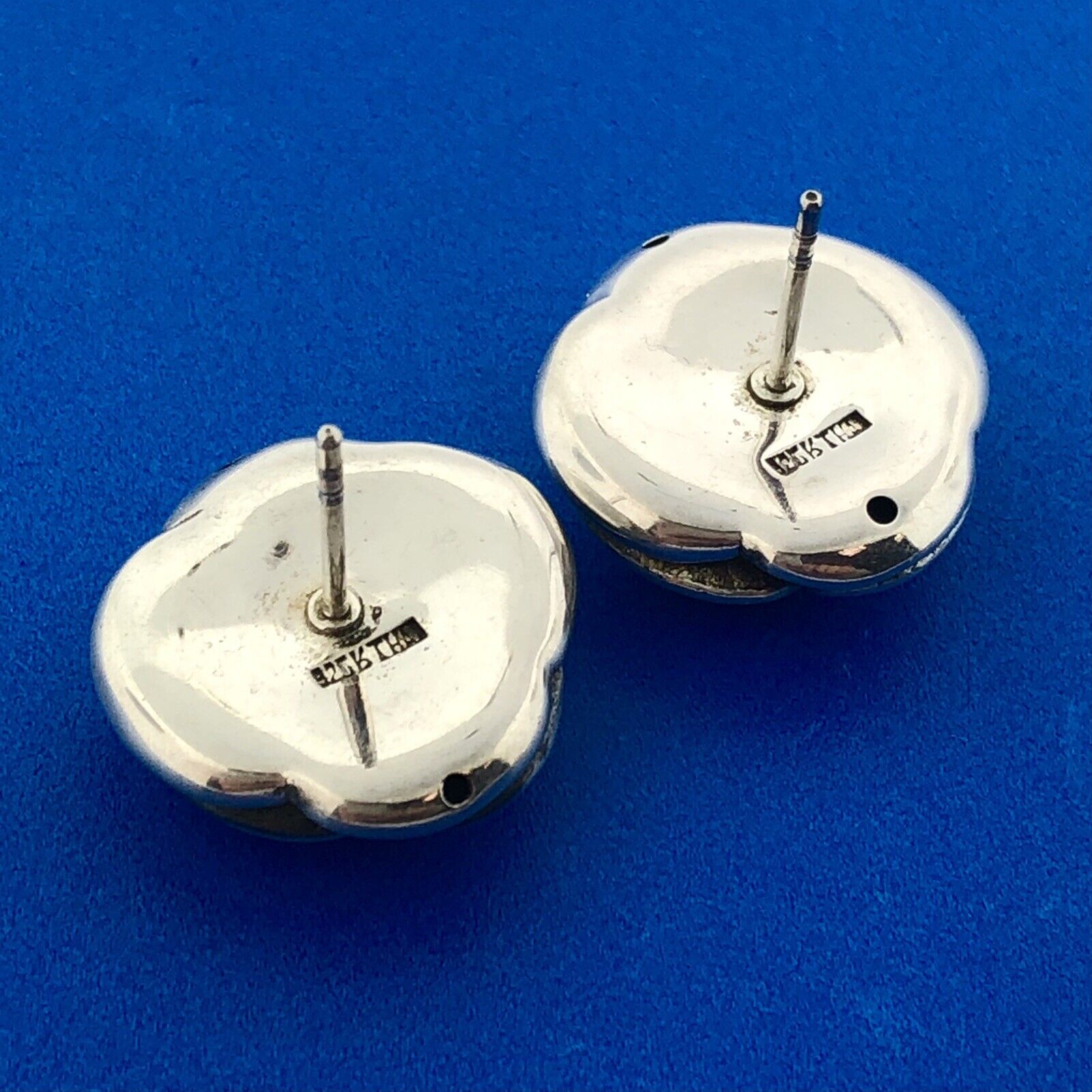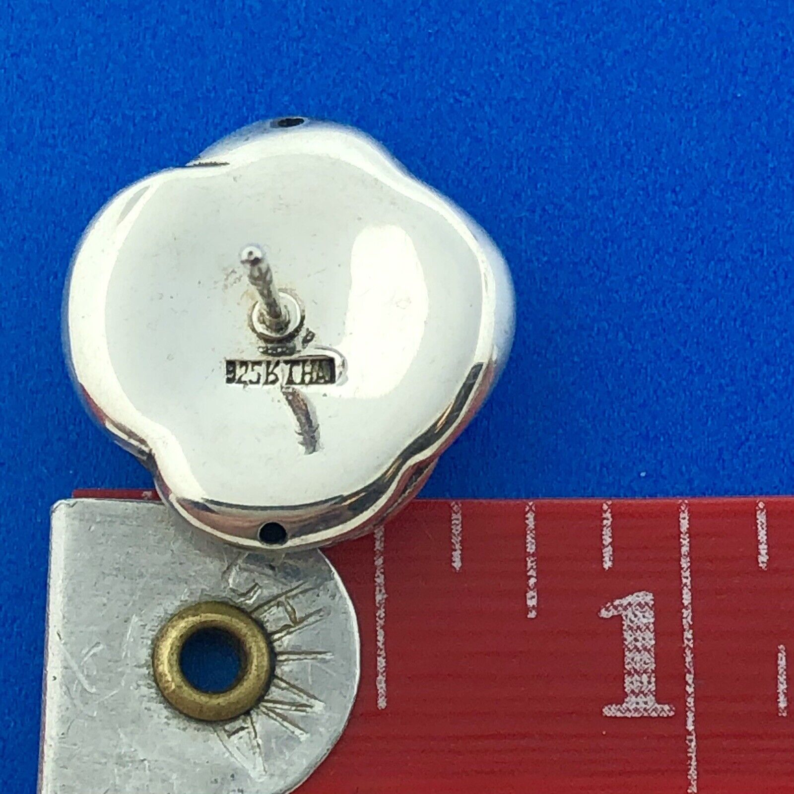 Retro Sterling Silver Rose Bud Camellia Flower Floral Statement Stud Earrings