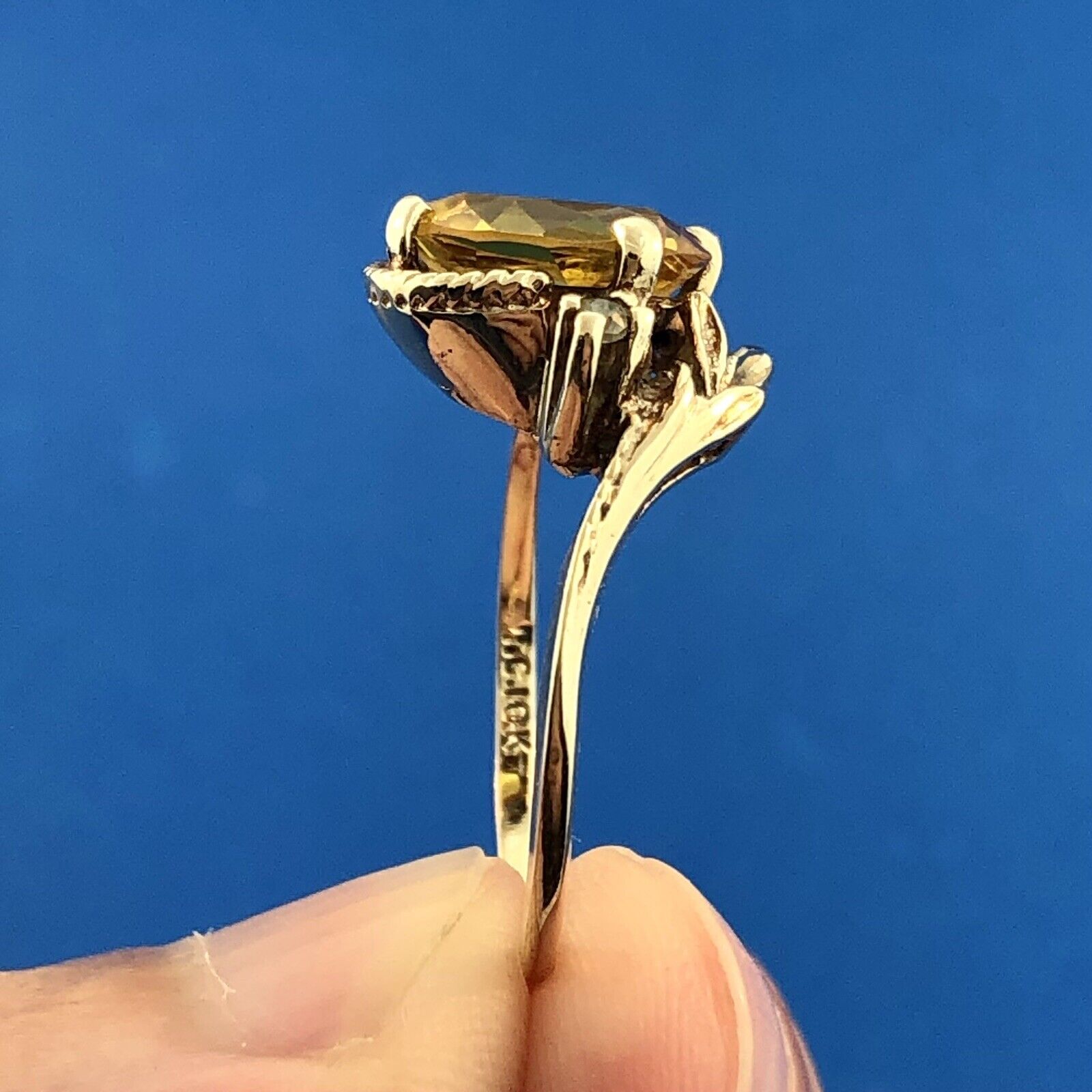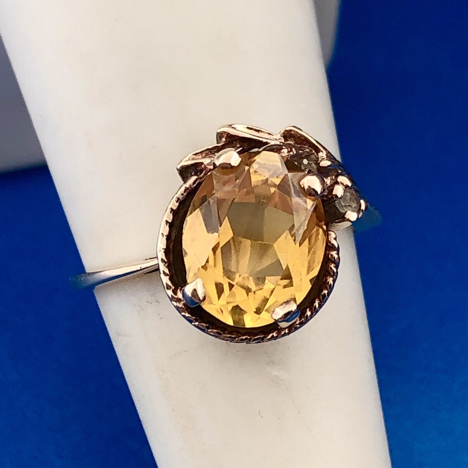 - Retro TCI 10K Yellow Gold Oval Citrine Diamond Accent November Anniversary Ring