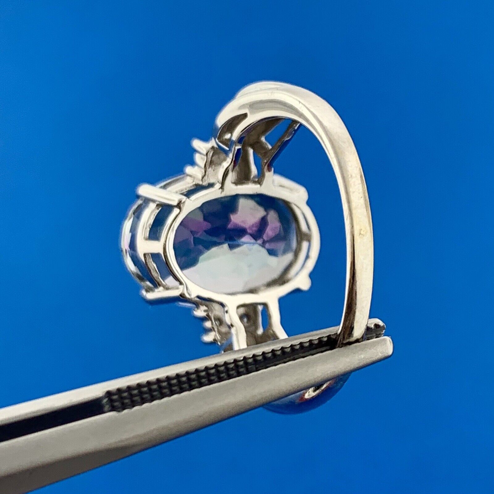 - Samuel Aaron THL 14K White Gold Oval Mystic Topaz Diamond Accented Ring