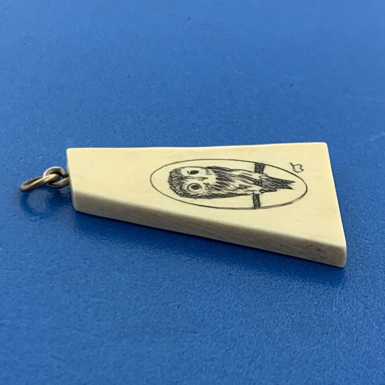 Signed CJ 925 Sterling Silver Scrimshaw Owl Wisdom Patience Trapezoid Pendant