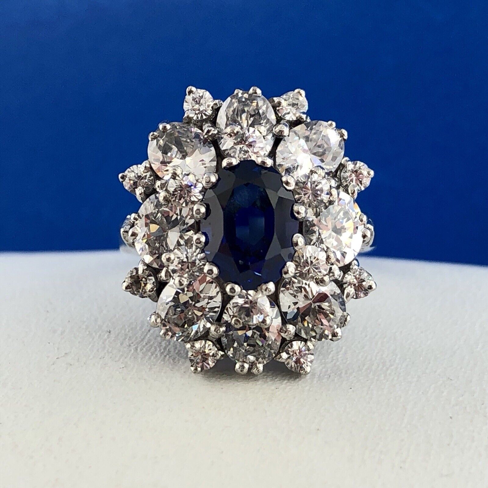 - Spectacular Sterling Silver 925 Blue Sapphire CZ Oval Cluster Cocktail Ring