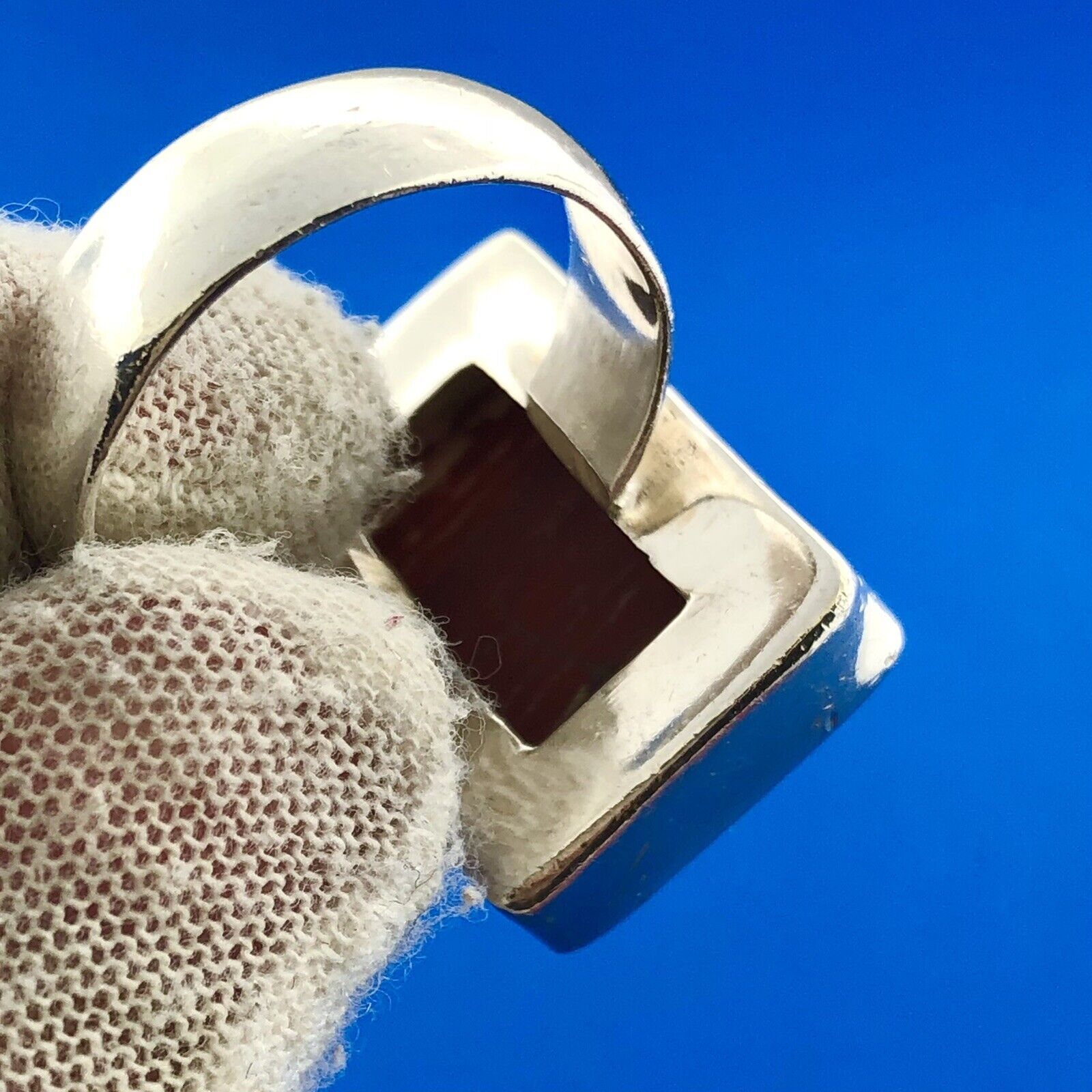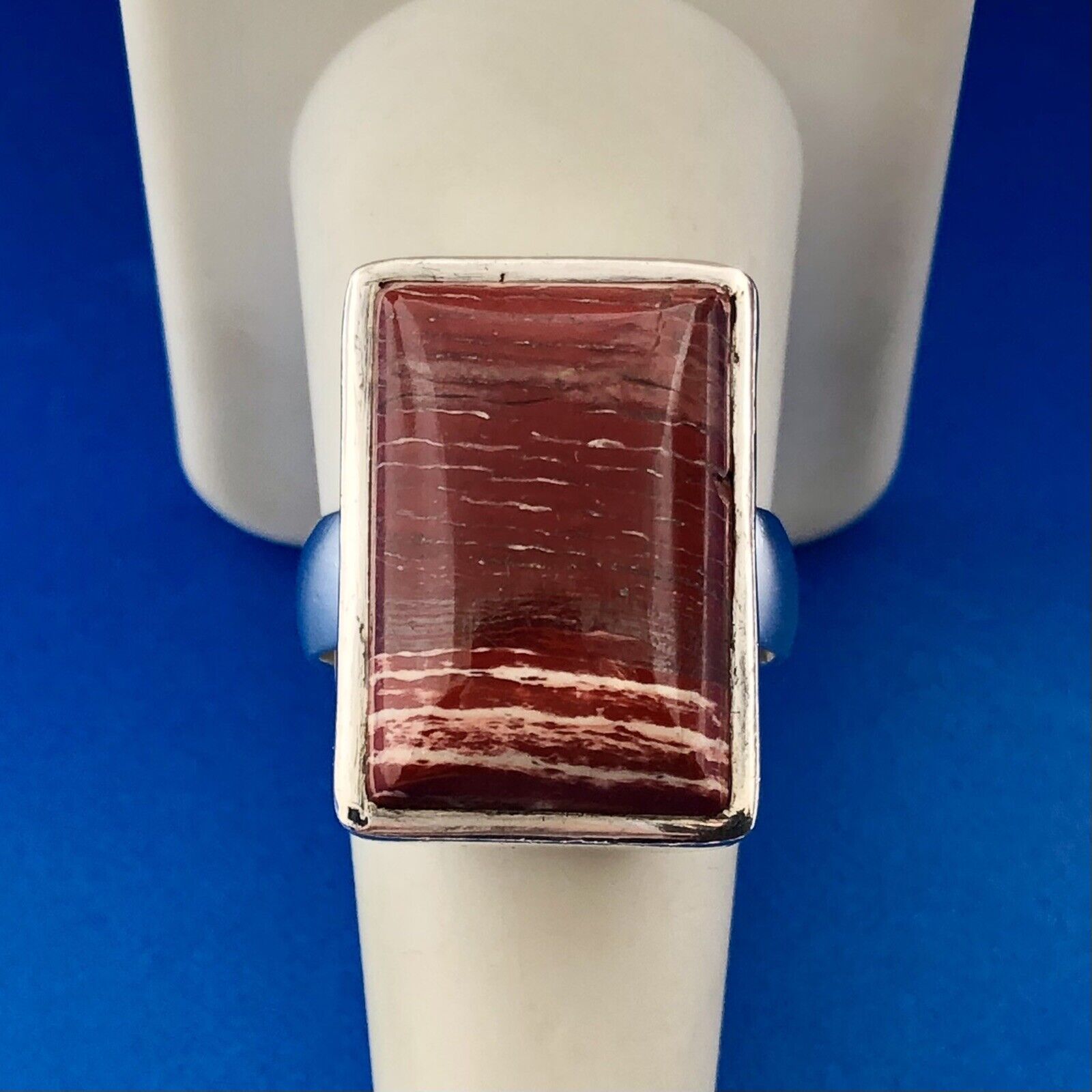 - Sterling Silver 925 Banded Red Jasper Rectangular Modernist Statement Ring