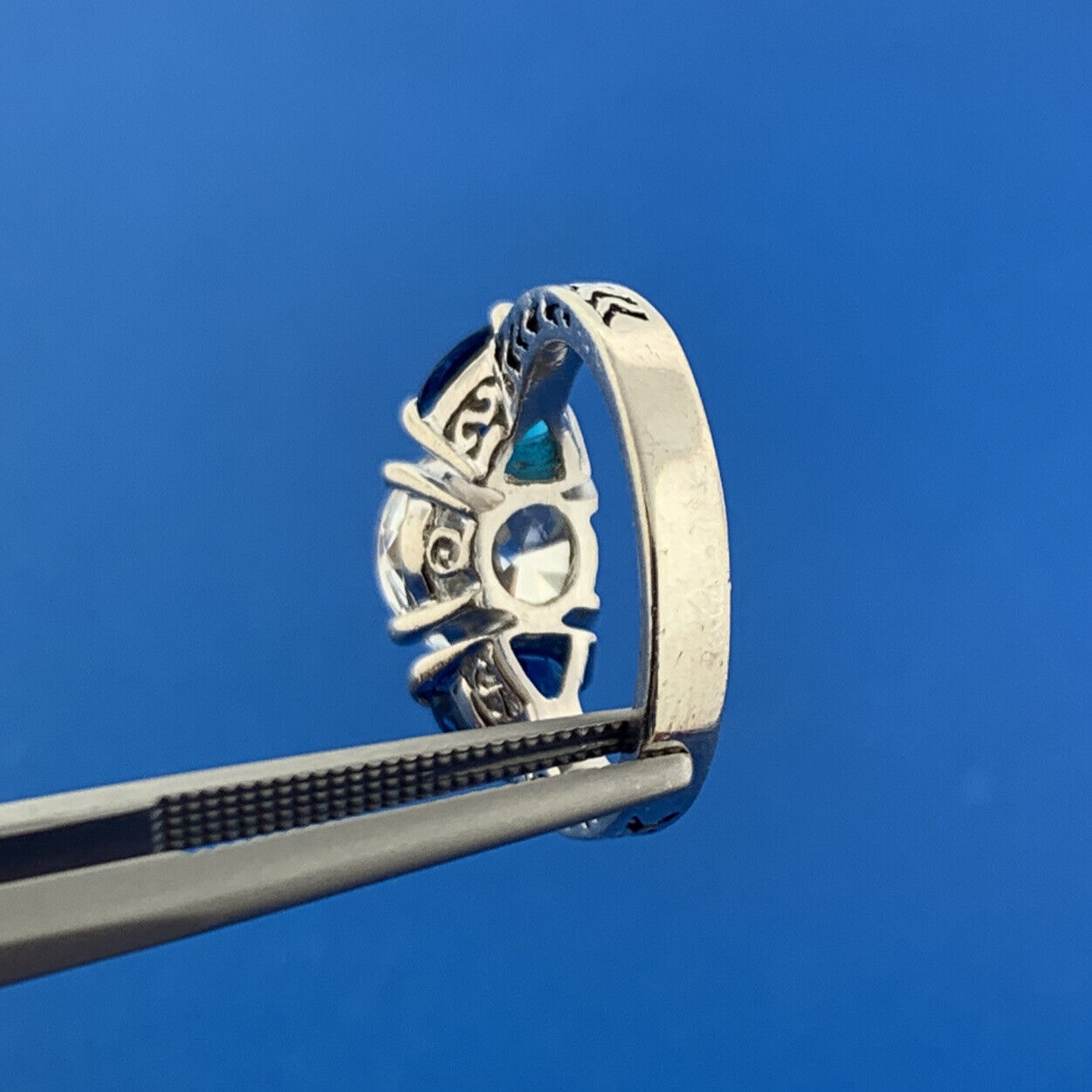Sterling Silver 925 Blue White Cubic Zirconia CZ Cocktail Ring Vintage Style