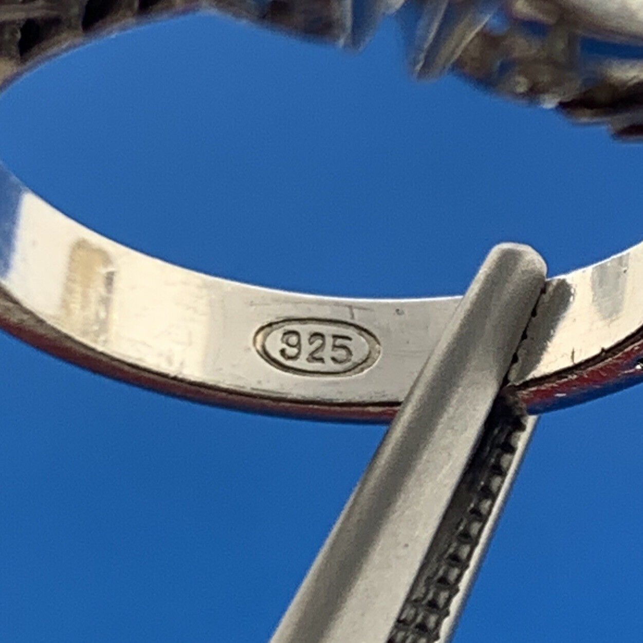 - Stunning Sterling Silver 925 Blue White Cubic Zirconia CZ Cocktail Ring