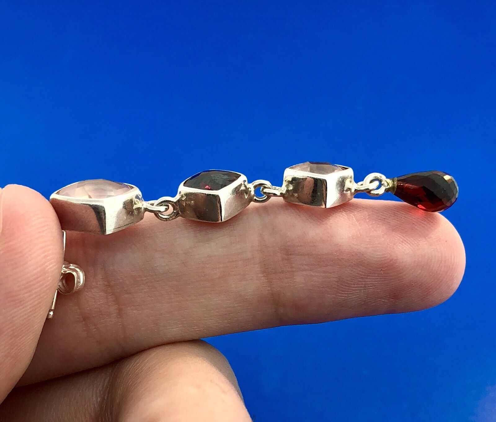 - Sterling Silver 925 Garnet Rose Quartz January Drop Dangle Statement Earrings