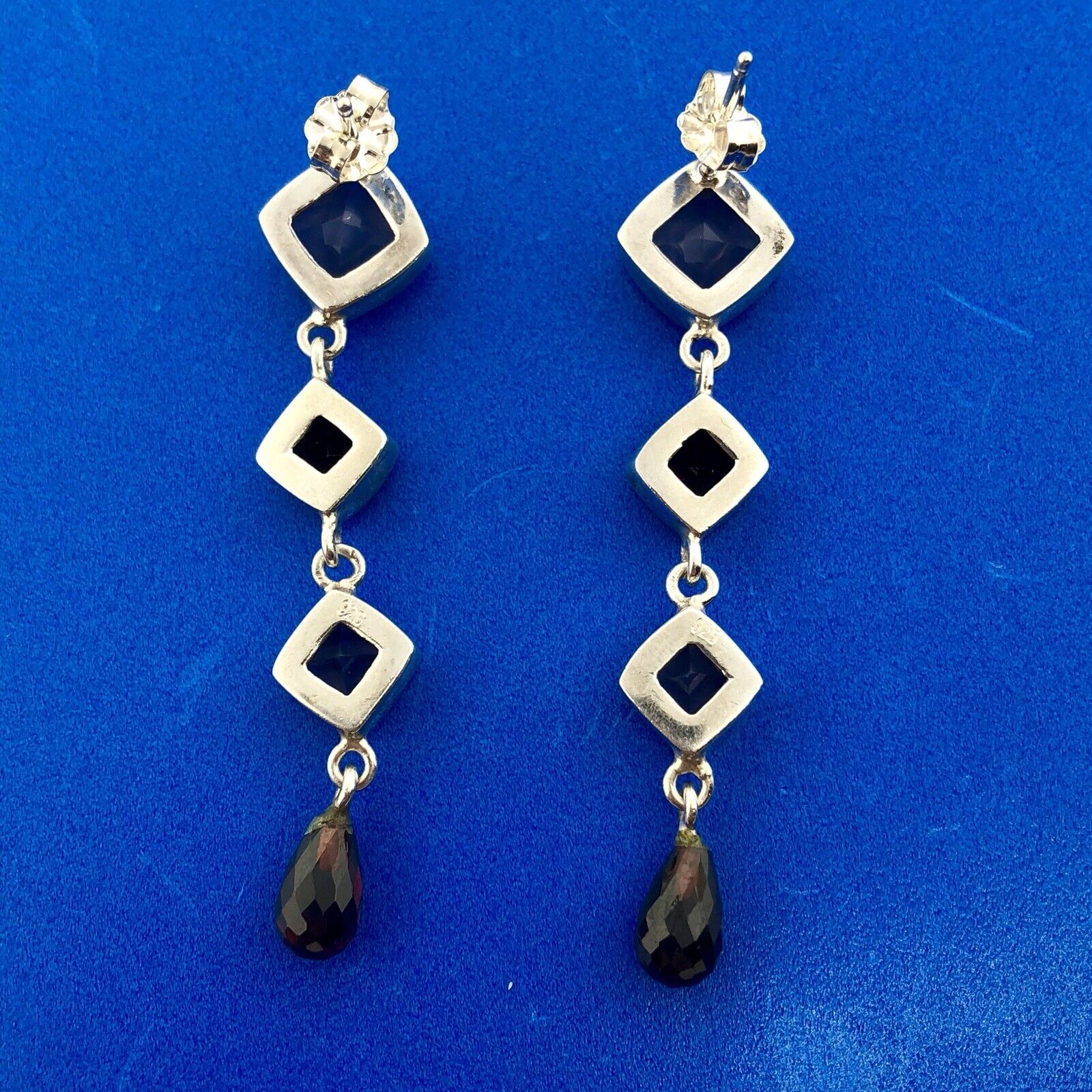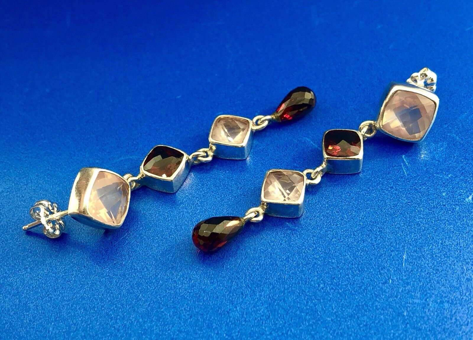 Sterling Silver 925 Garnet Rose Quartz January Drop Dangle Statement Earrings