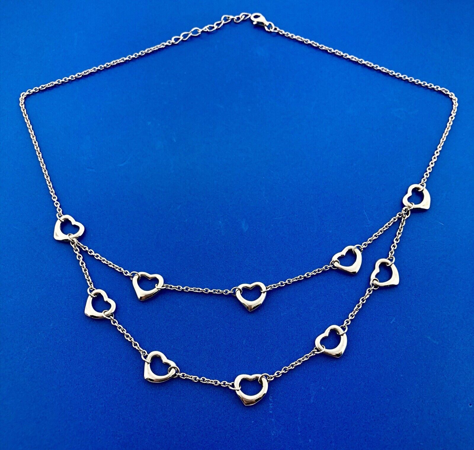 - Sterling Silver 925 Heart Cutout Double Drop Sweet Heart Fashion Necklace