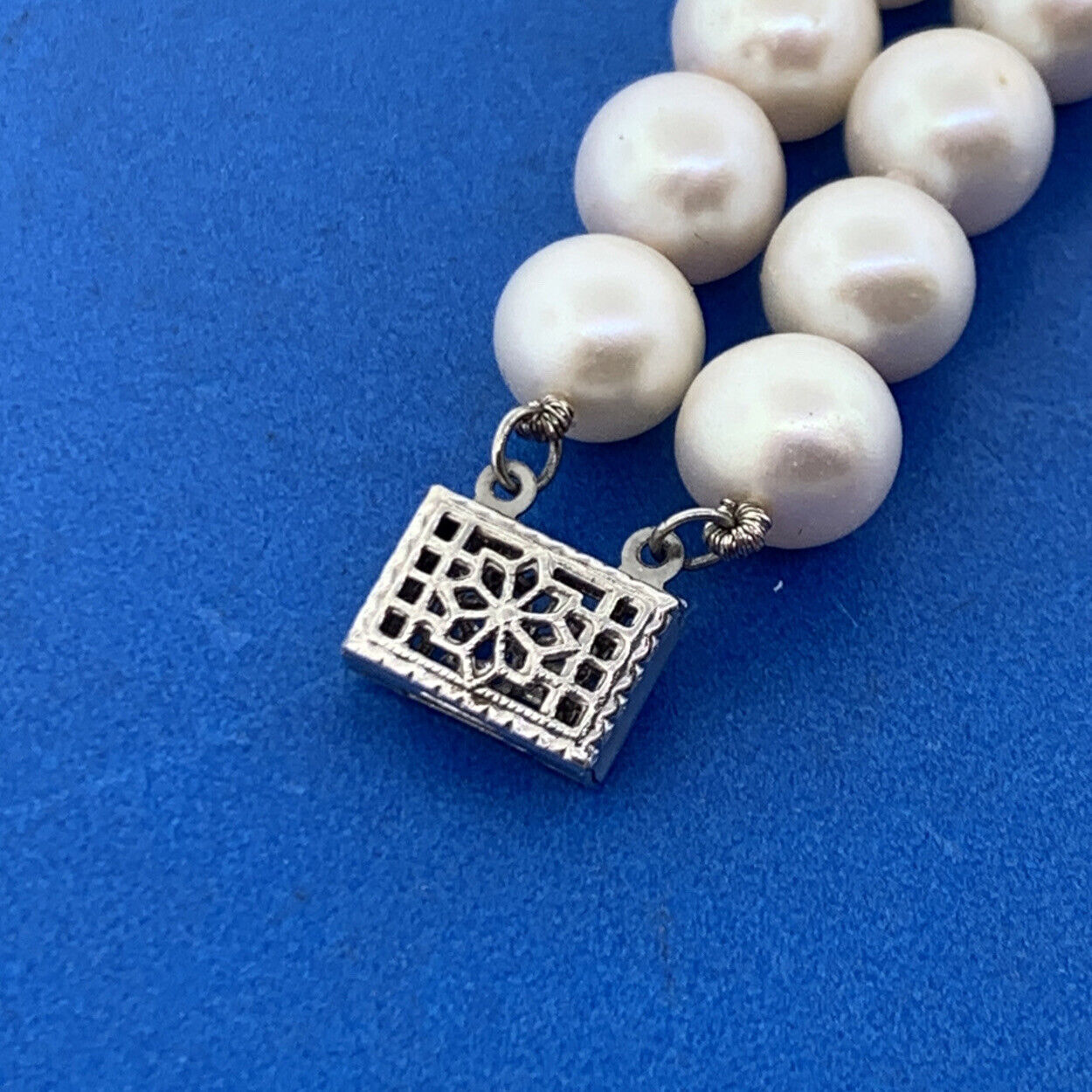 - Sterling Silver 925 Pearl White Topaz Accented Double Strand Bracelet
