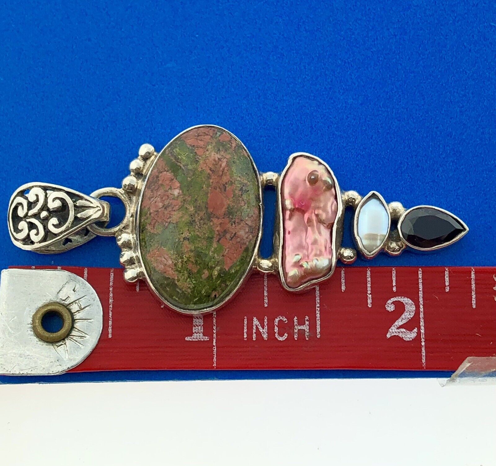 - Sterling Silver 925 Unakite Mother Of Pearl Garnet Pearl Statement Pendant