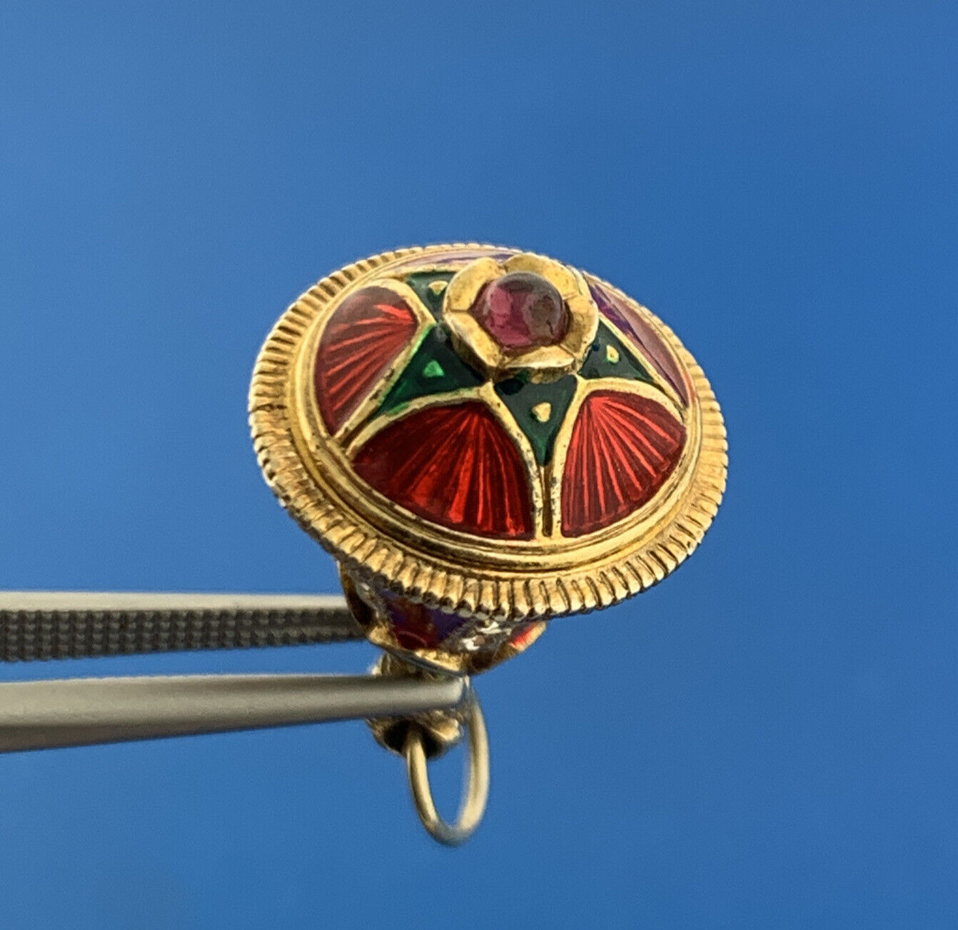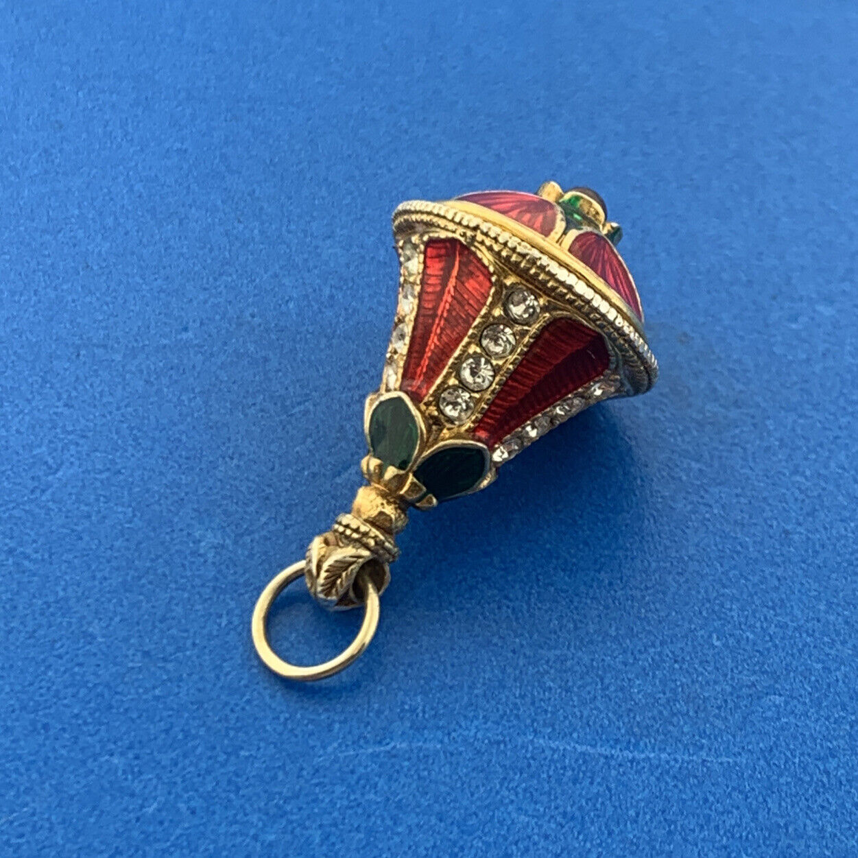 - Sterling Silver 925 Vermeil Green Red Enamel CZ Christmas Bell Pendant Charm