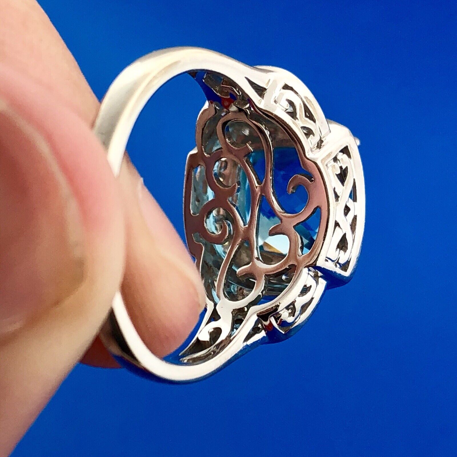 - Stunning 14K White Gold Blue Topaz Diamond Aquamarine Accent Statement Ring