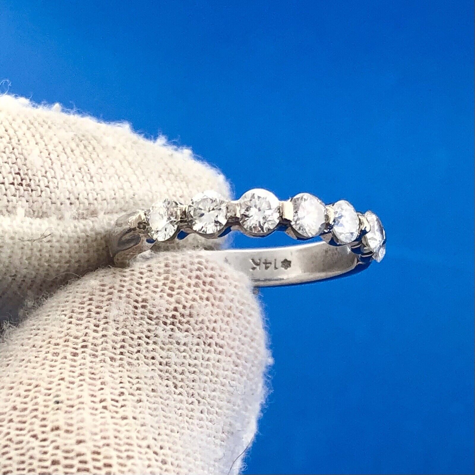 - Stunning 14K White Gold Seven Diamond Anniversary Eternity Band Ring