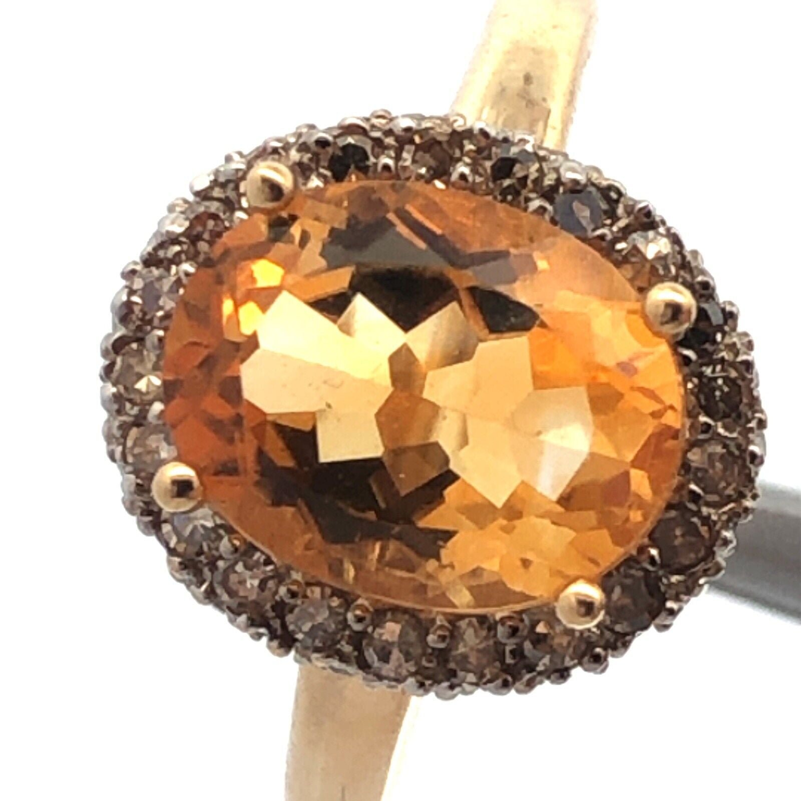 Stunning 14k Yellow Gold Citrine Diamond Halo Ring