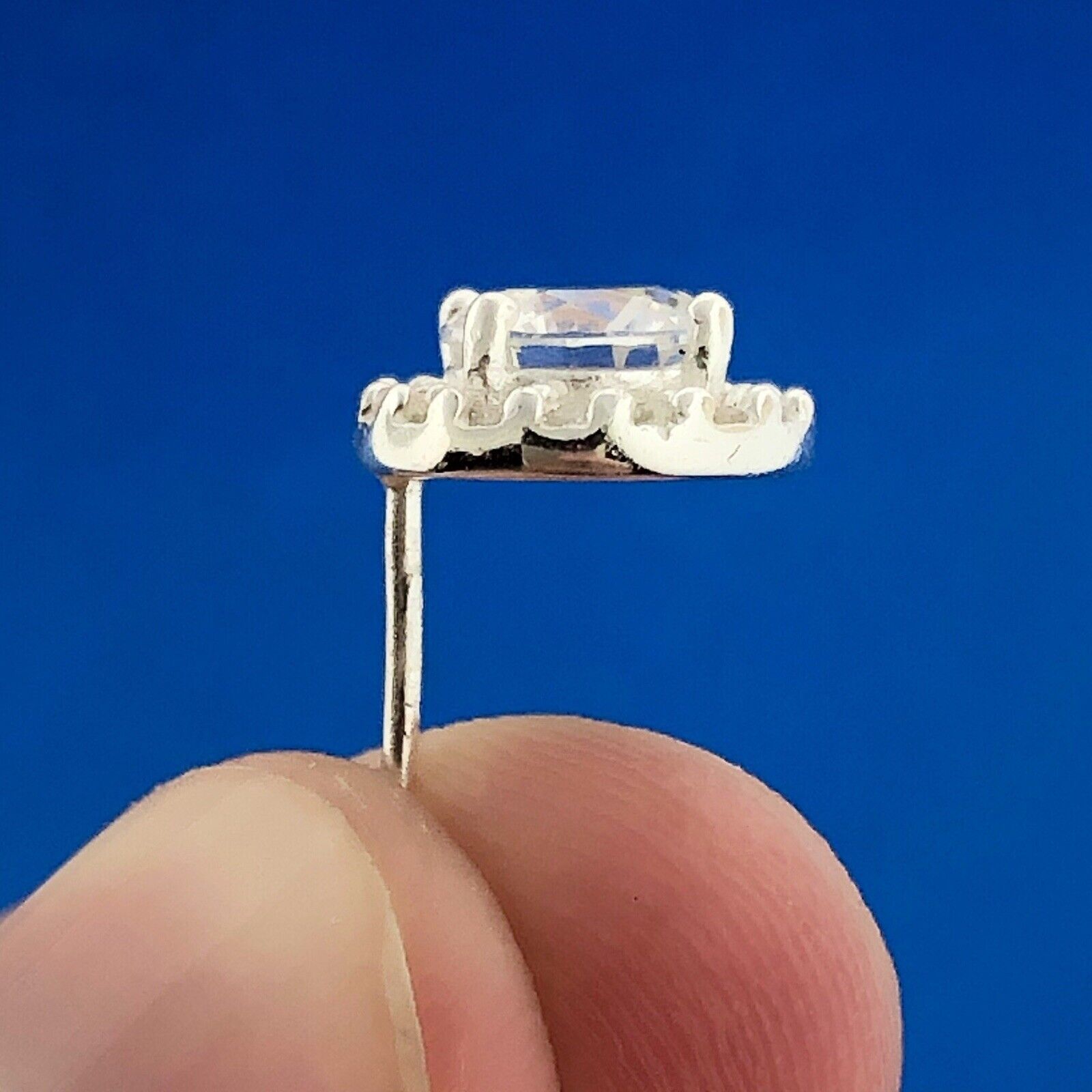 - Stunning 925 Sterling Silver Cubic Zirconia Solitaire Halo Bridal Stud Earrings