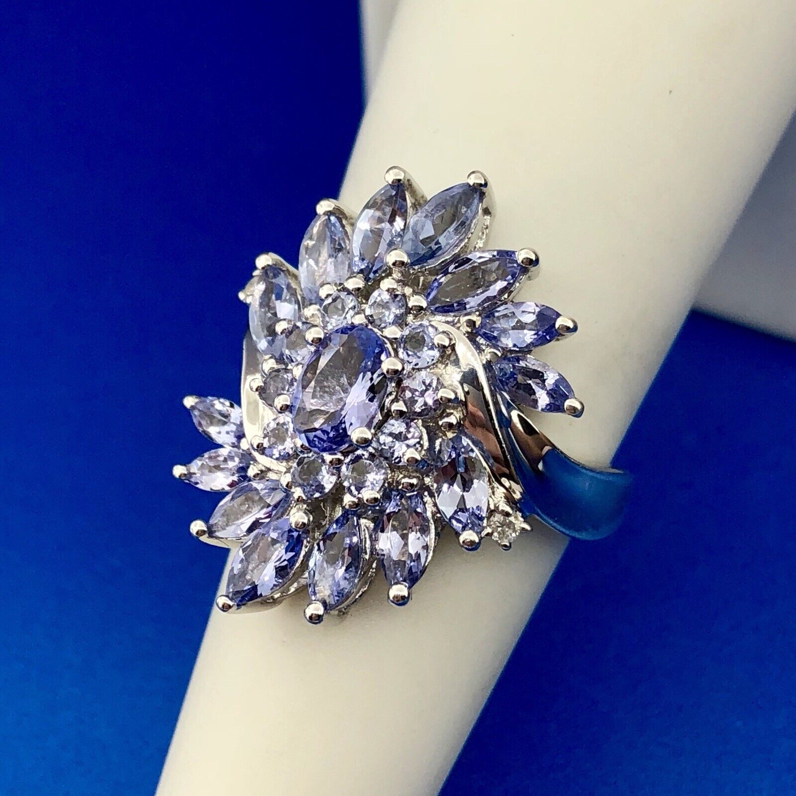 - Stunning Designer JS 925 Sterling Silver Tanzanite Diamond Floral Cluster Ring