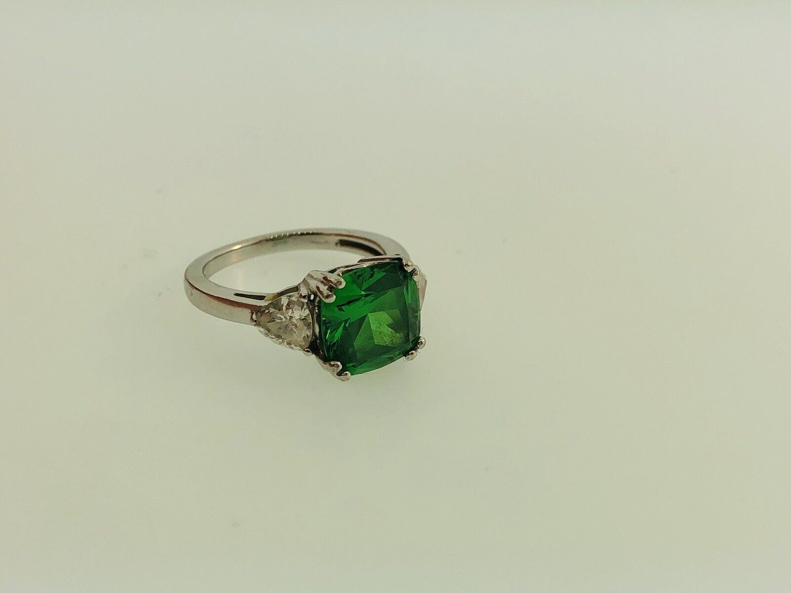 - Stunning Designer Sterling Silver Green White Cubic Zirconia CZ Cocktail Ring