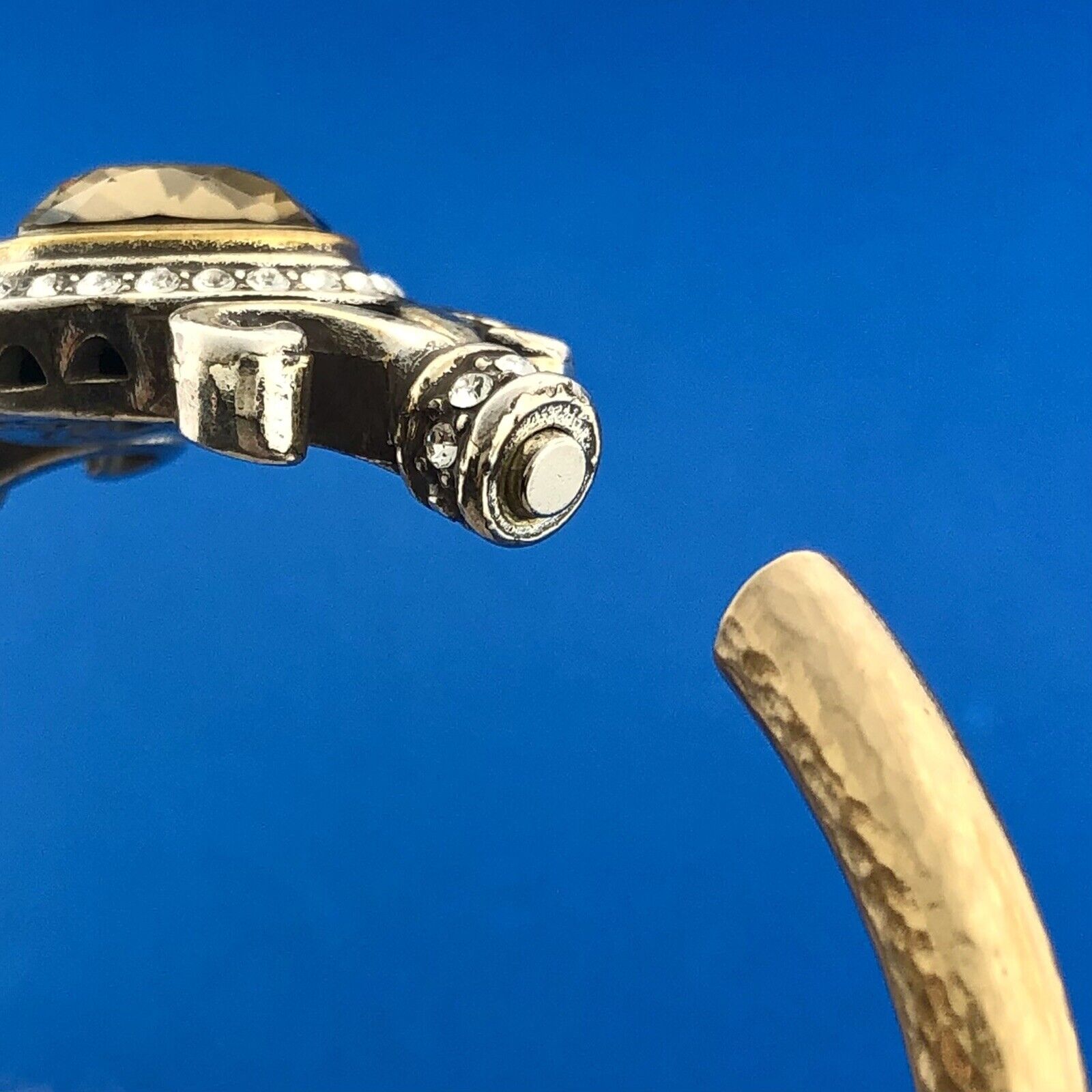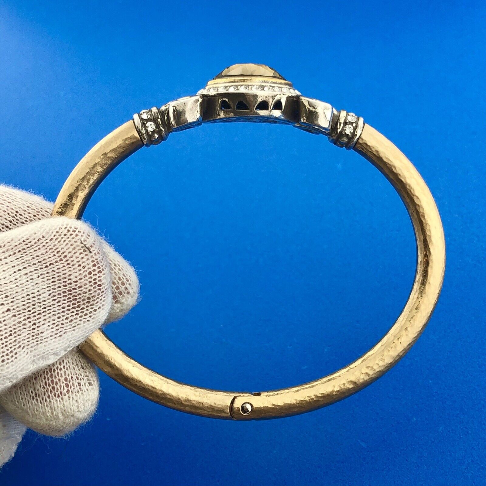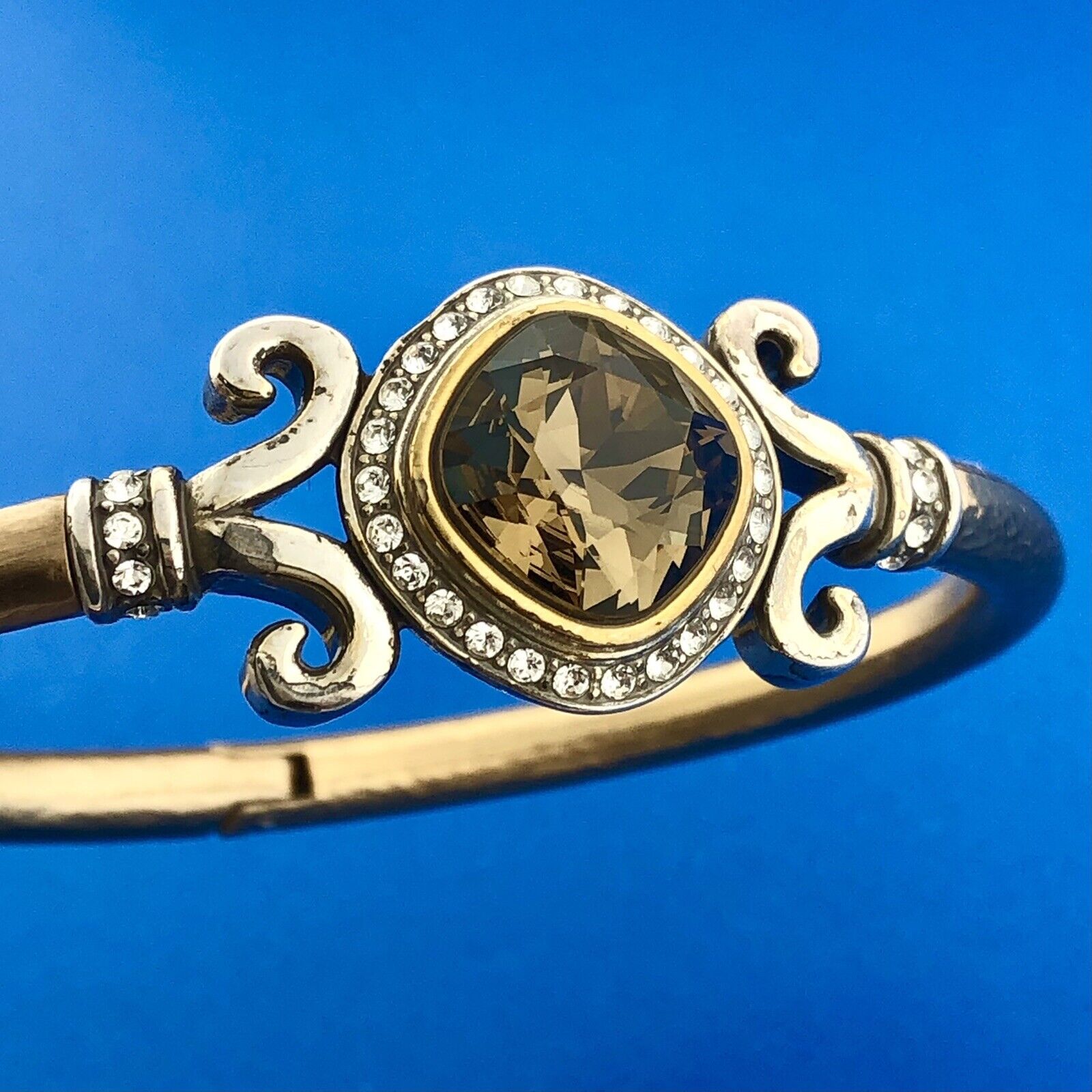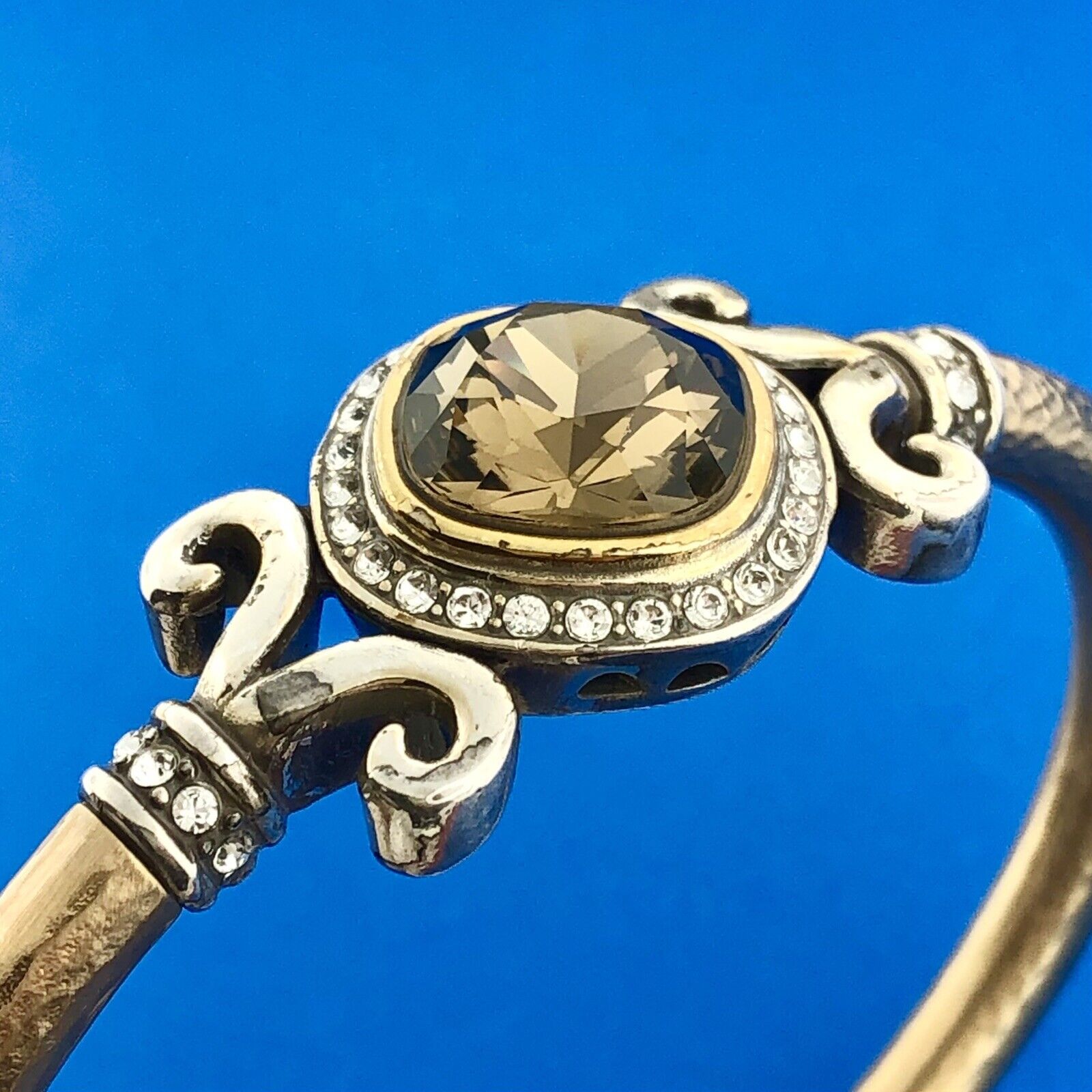 - Stunning Silver Plated Smoky Quartz White Rhinestone Hinged Cuff 6.5" Bracelet