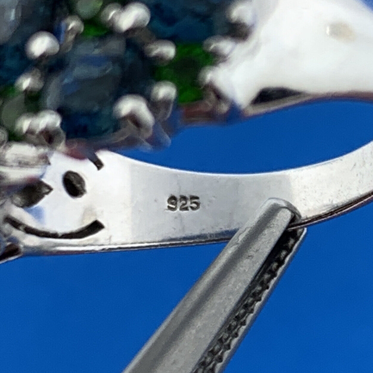 Stunning Sterling Silver 925 Brilliant Blue and Green Quartz Cocktail Ring