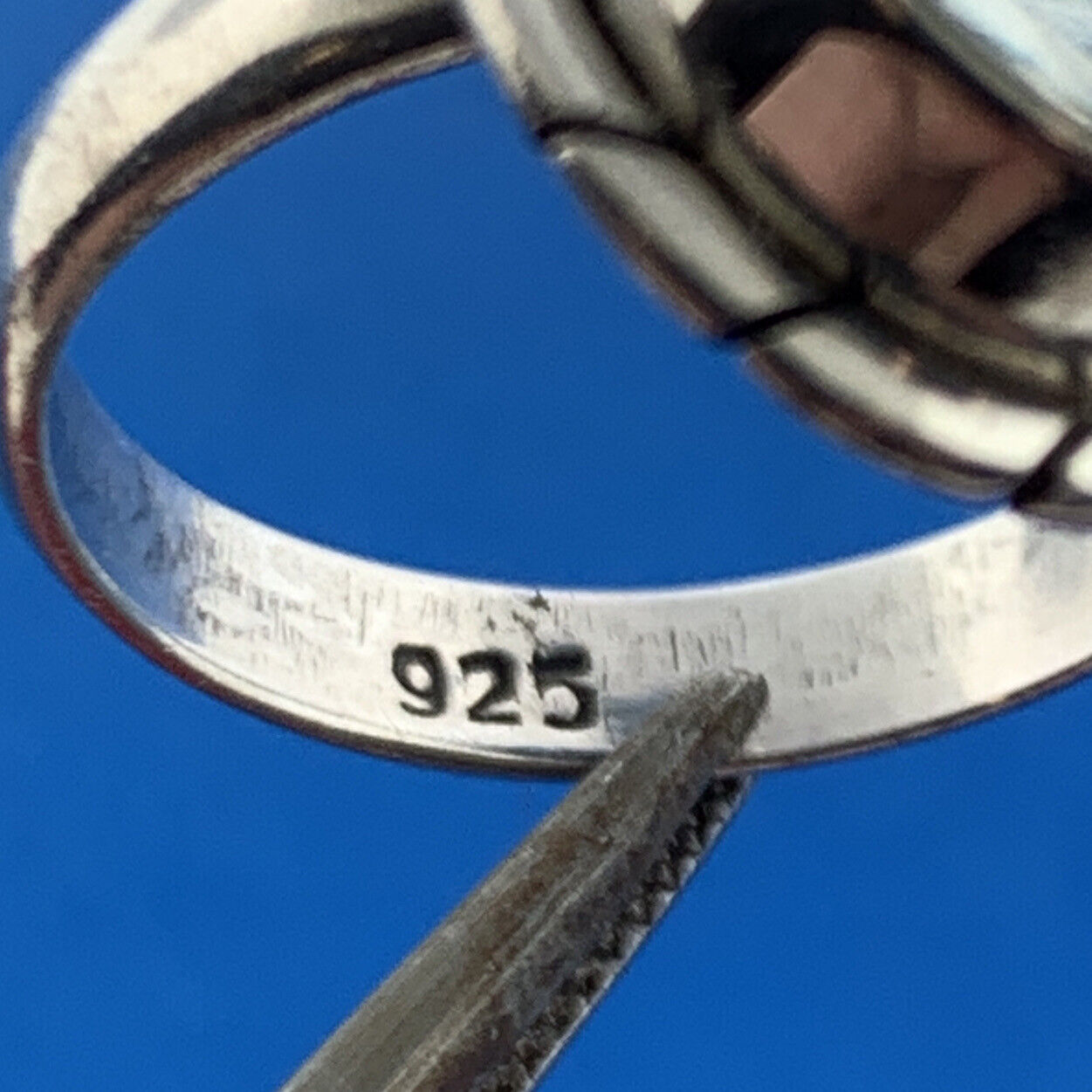 - Stunning Sterling Silver 925 Cabochon Blue Green Glass Statement Ring Size 6.25