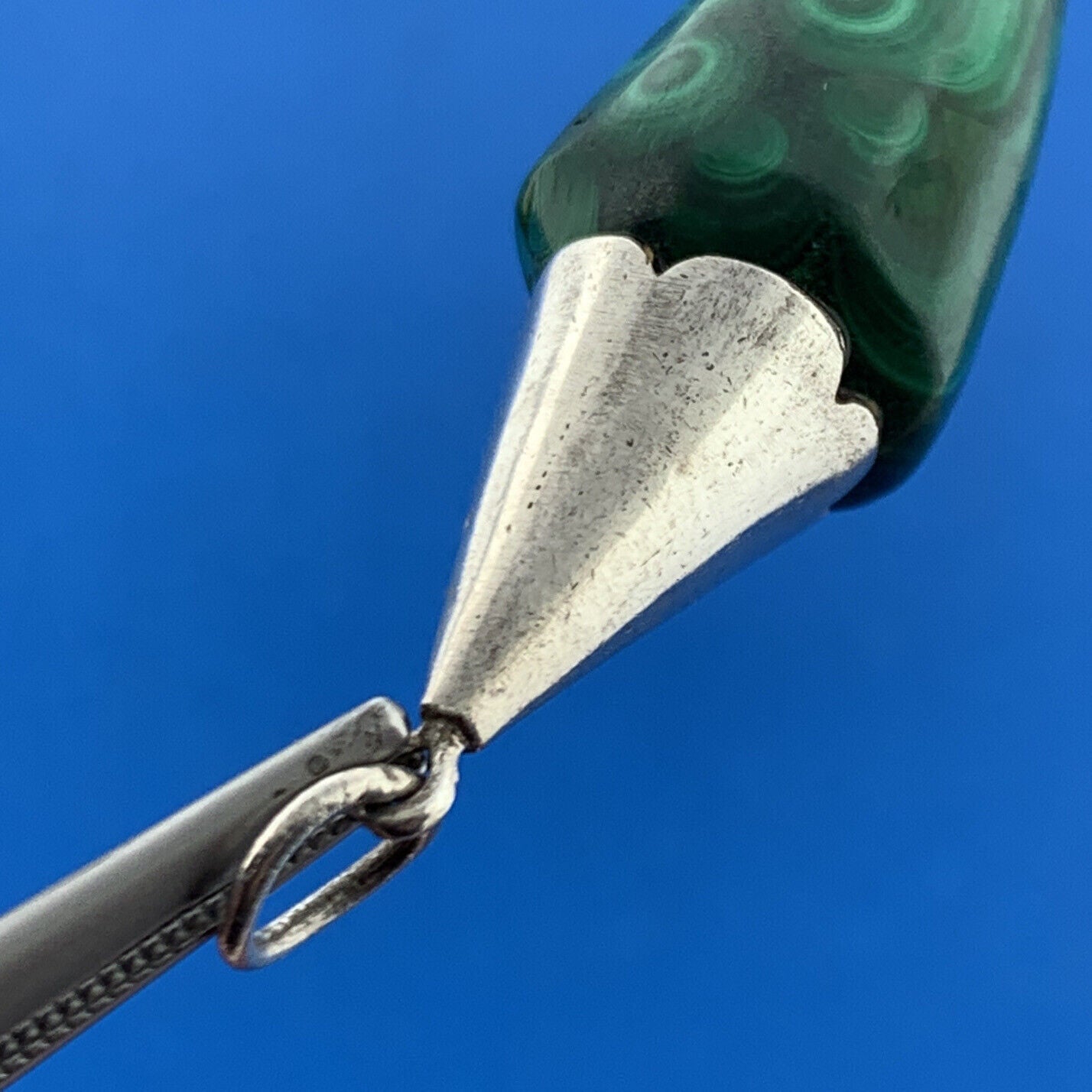- Stunning Sterling Silver 925 Cabochon Green Malachite Talismans Dangle Pendant