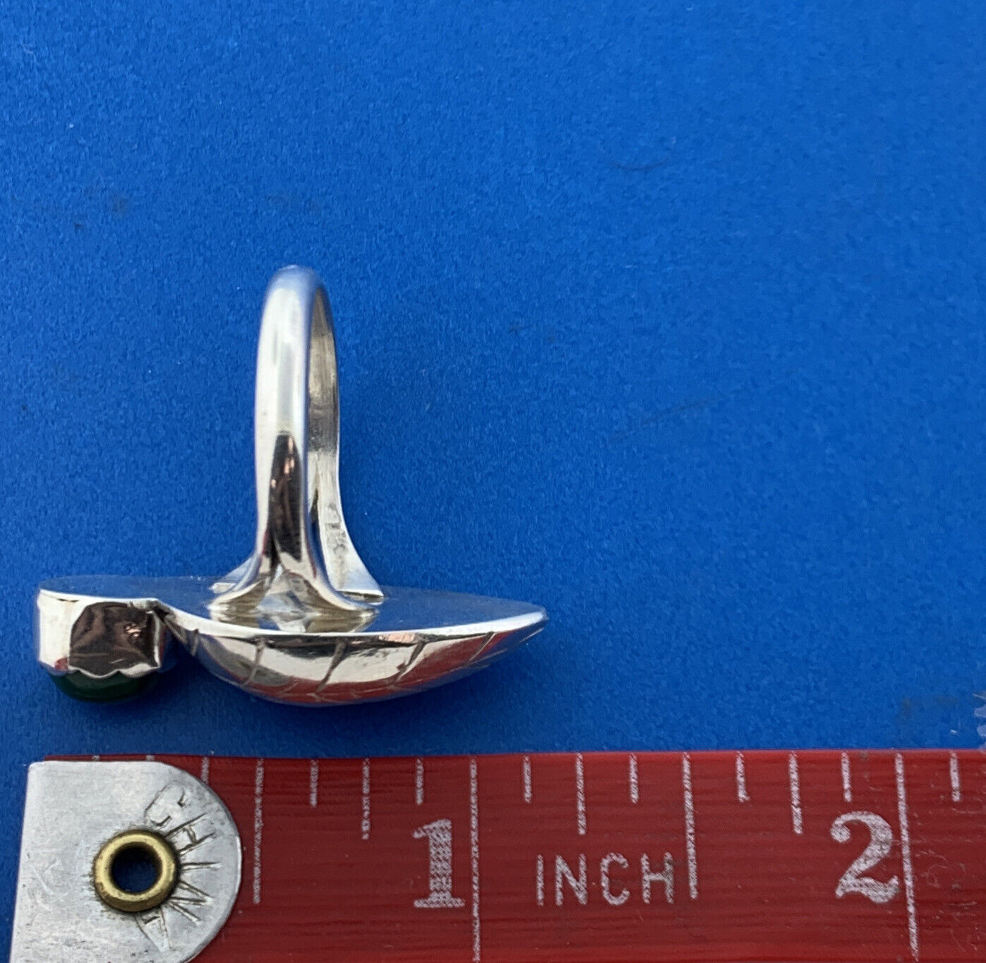 - Stunning Sterling Silver 925 Cabochon Oval Green Malachite Floral Ring Size 8