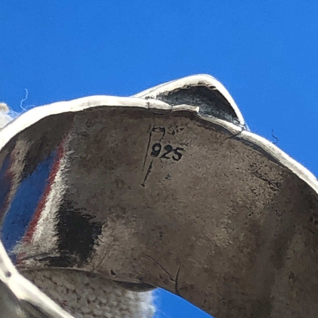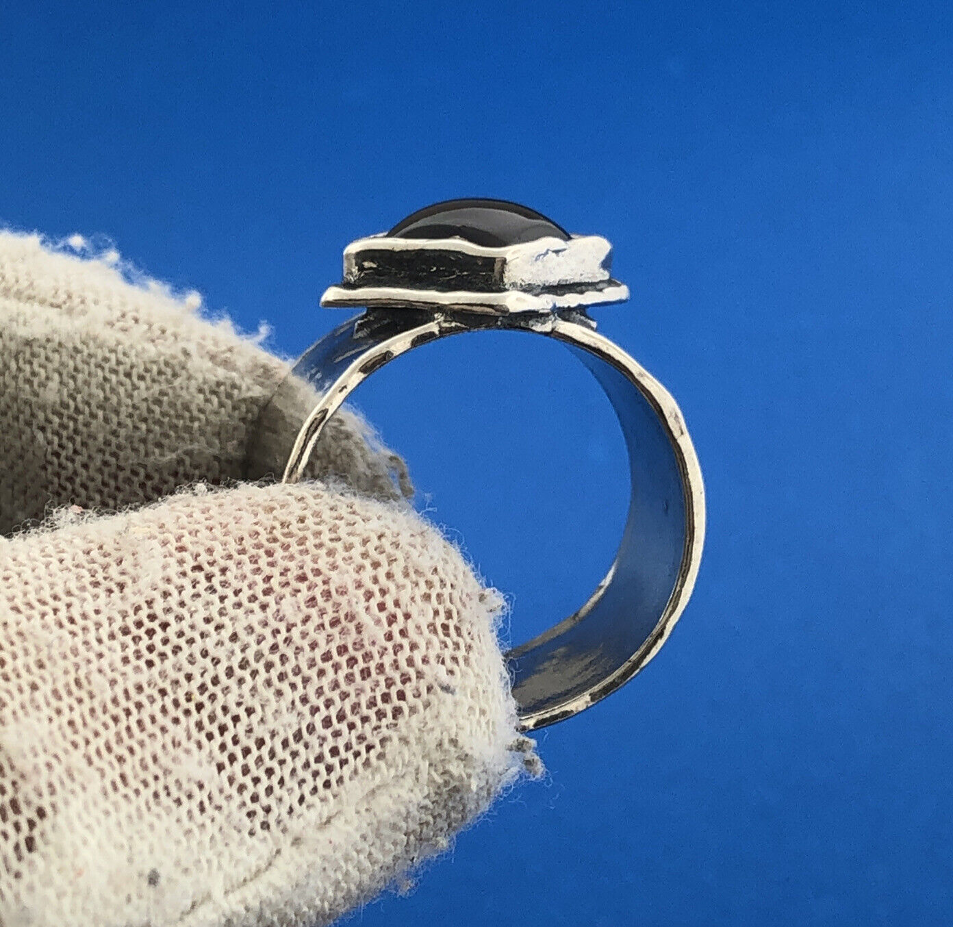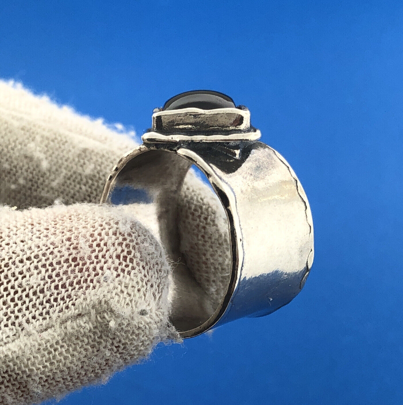 - Stunning Sterling Silver 925 Cushion Cabochon Garnet Thick Band Ring Size 8.5