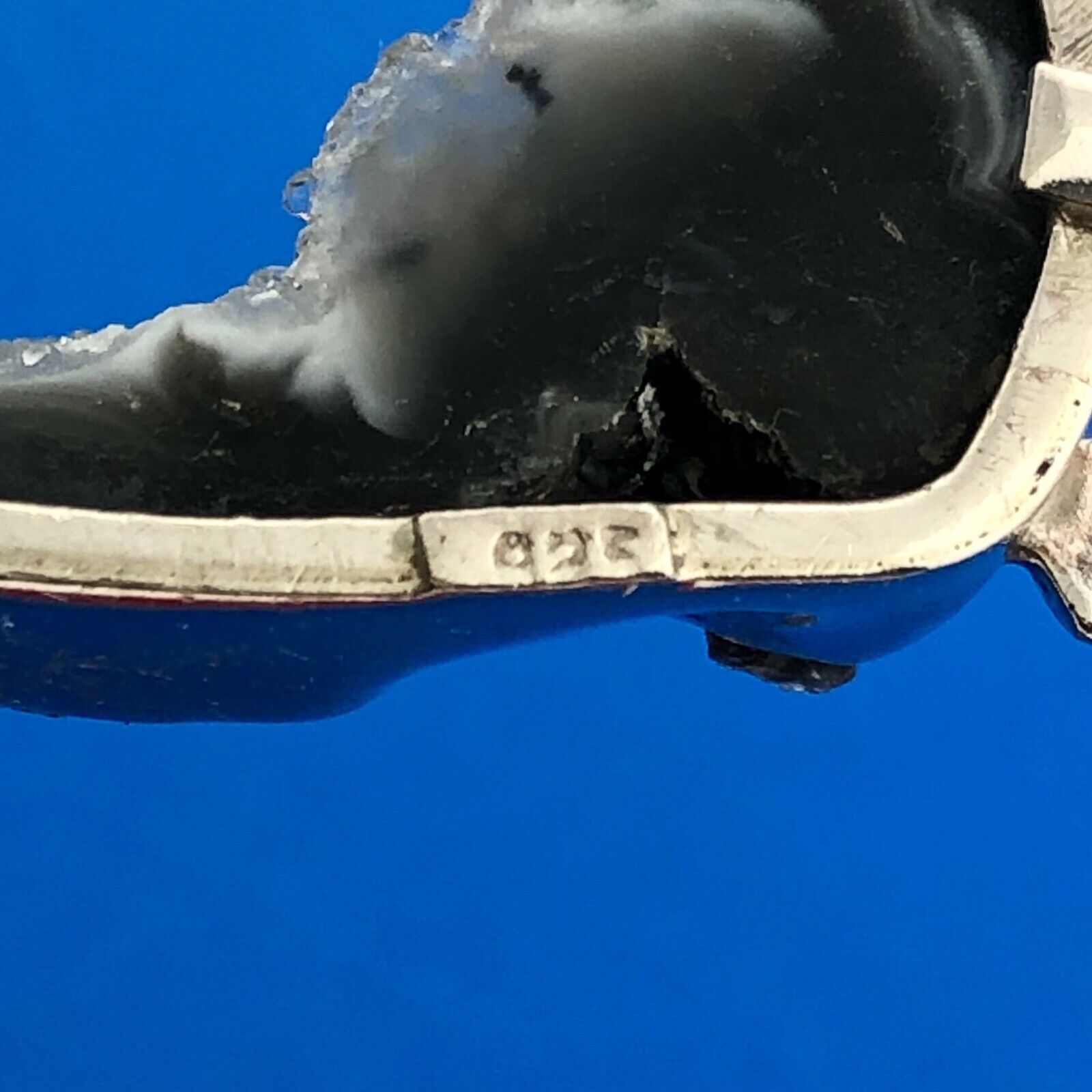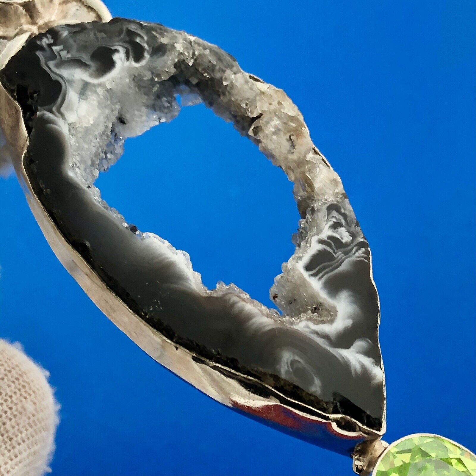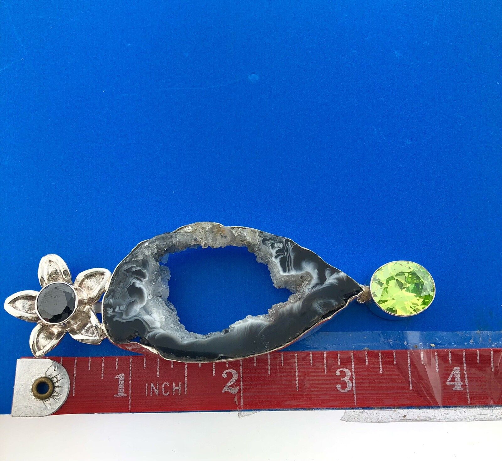 - Stunning Sterling Silver 925 Druzy Quartz Black Chartreuse CZ Statement Pendant