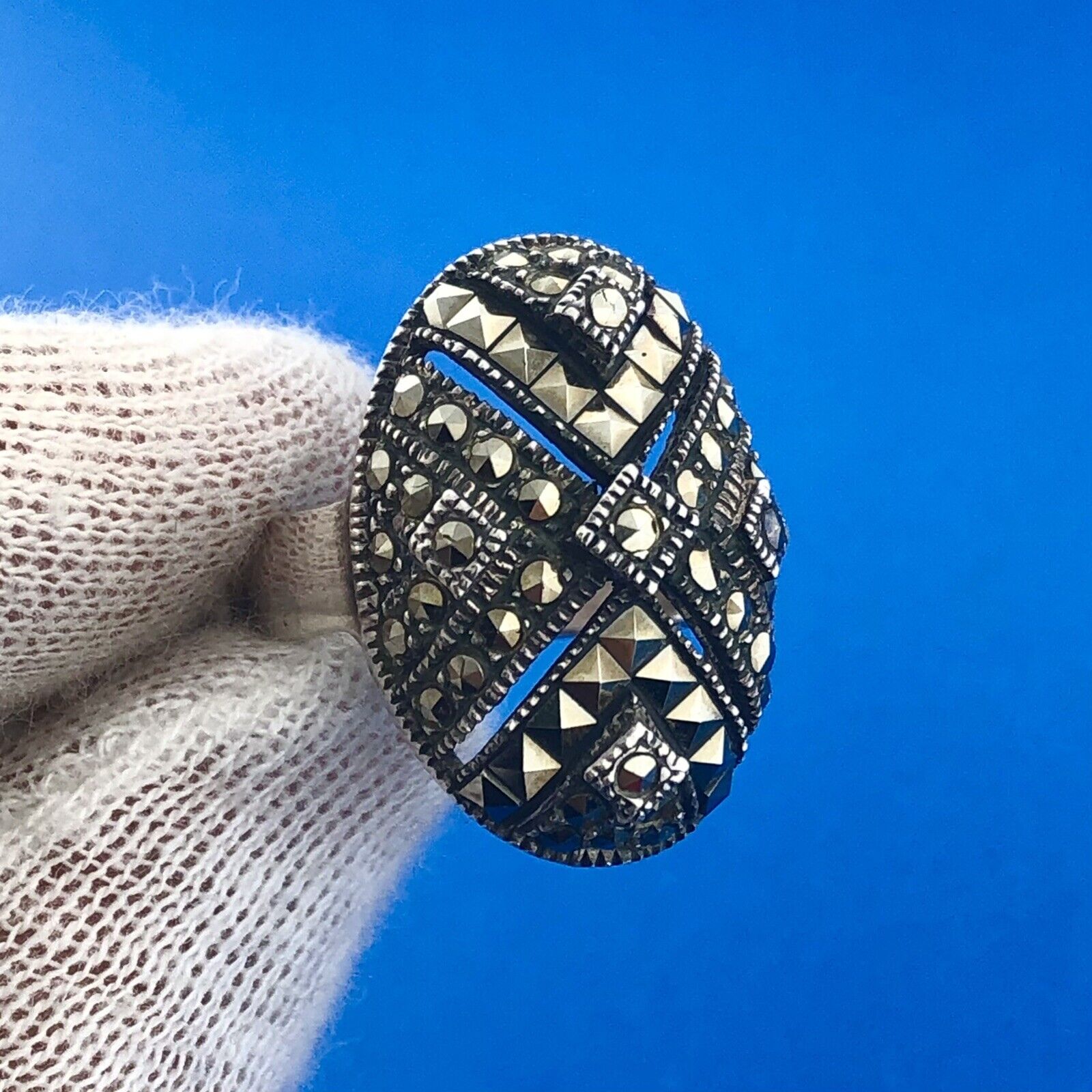 - Stunning Sterling Silver 925 Marcasite Layered Cluster Oval Finer Ring Size 7