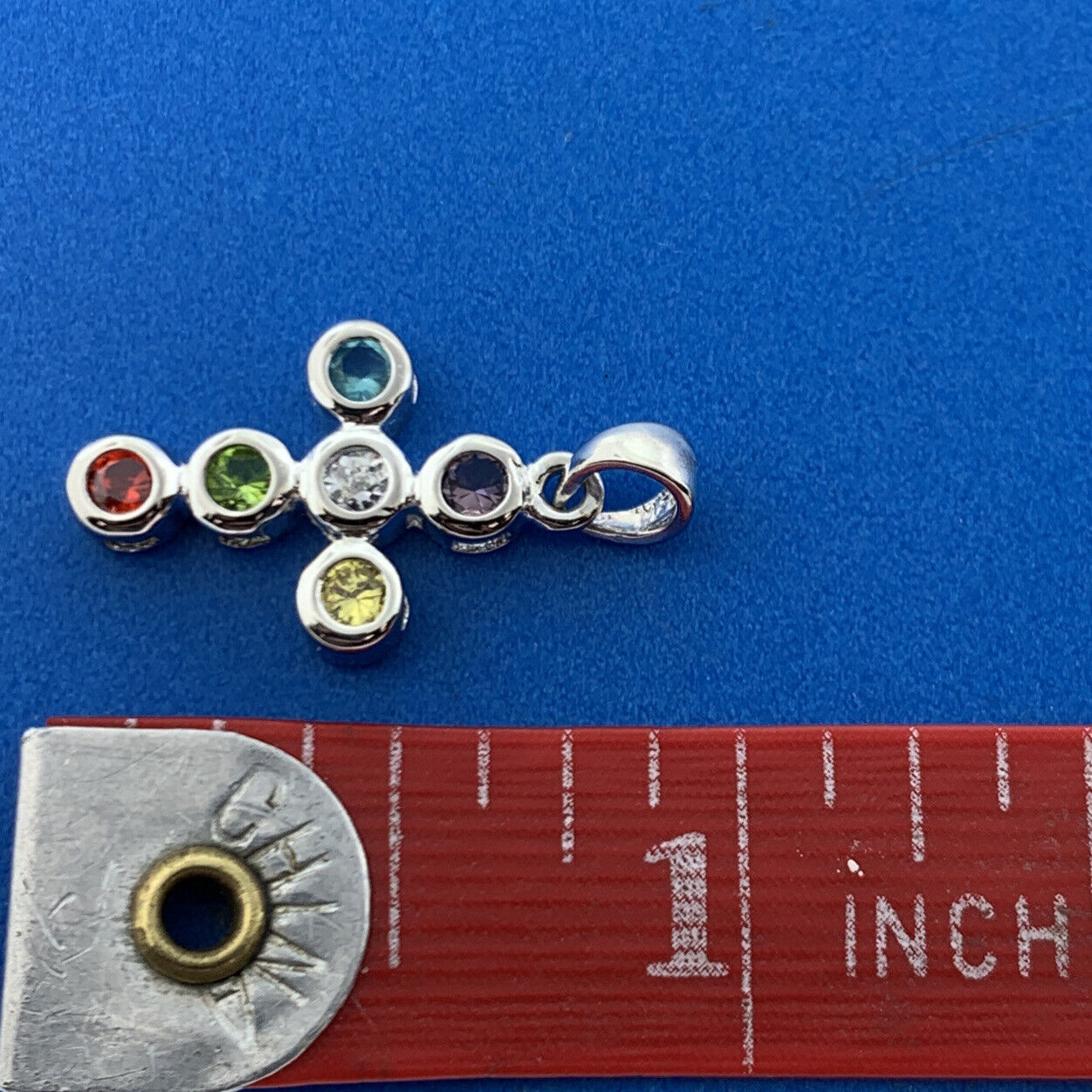 - Stunning Sterling Silver 925 Multi-Color CZ Religious Faith Cross Dangle Pendant
