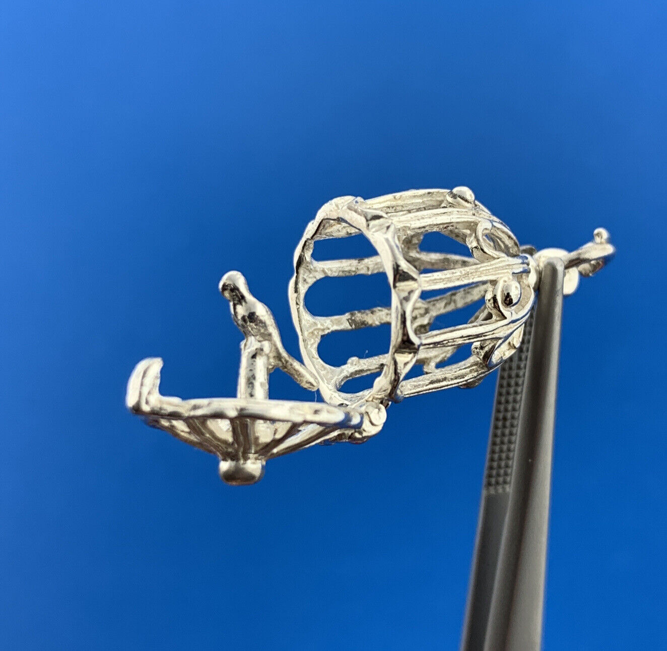 Stunning Sterling Silver 925 Openwork Birdcage Hinged Dangle Pendant