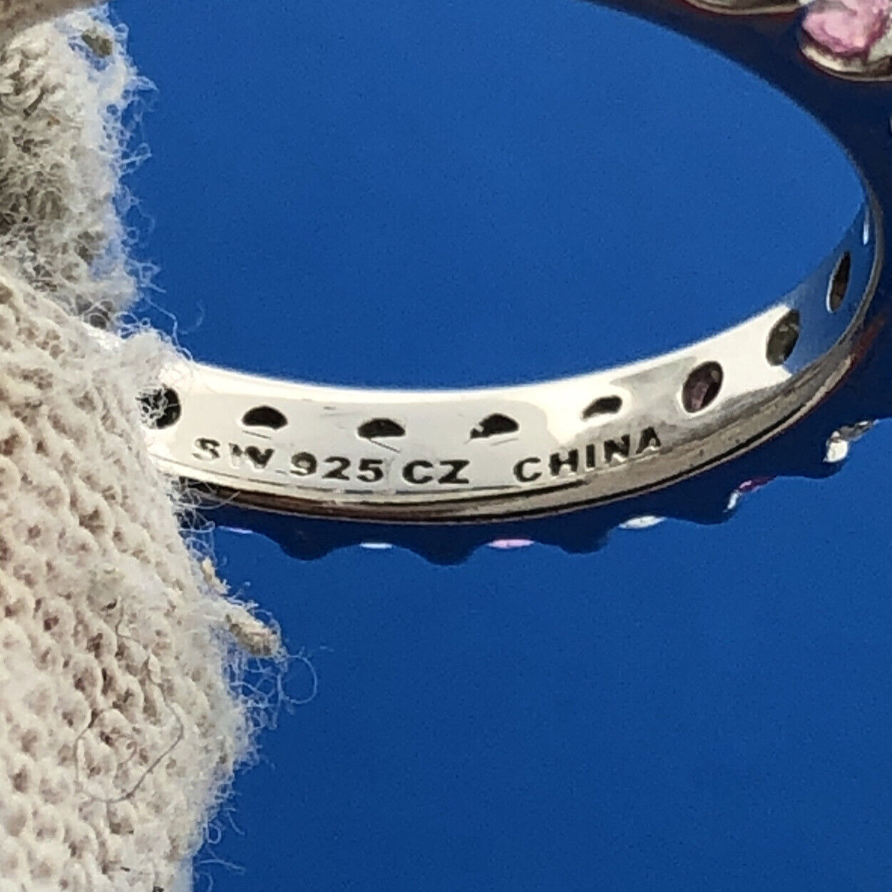 - Stunning Sterling Silver 925 Round Cut Pink White Sparkling CZ Band Ring Size 6