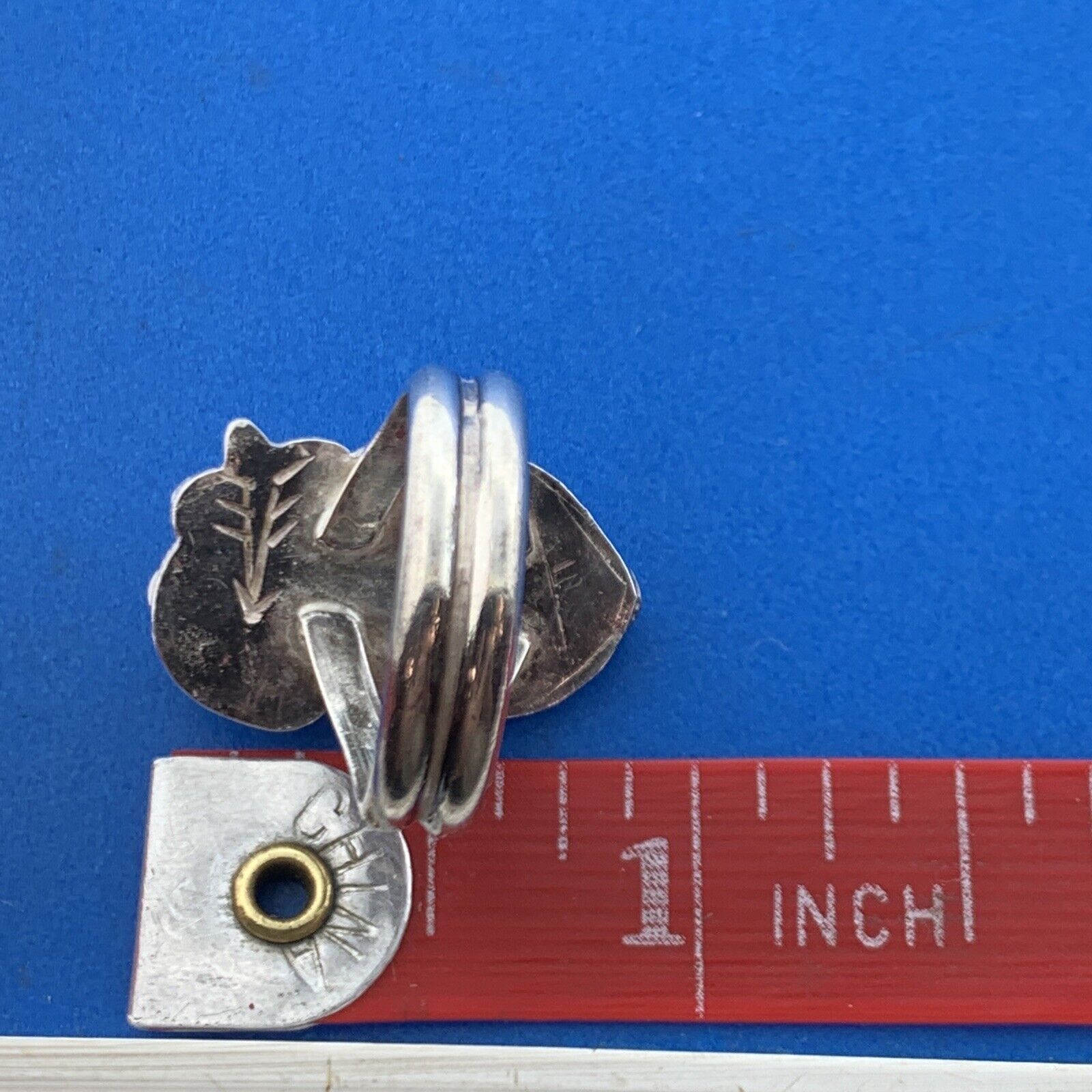 Stunning Sterling Silver 925 Turquoise Coral Floral Short Finger Ring Size 7.75