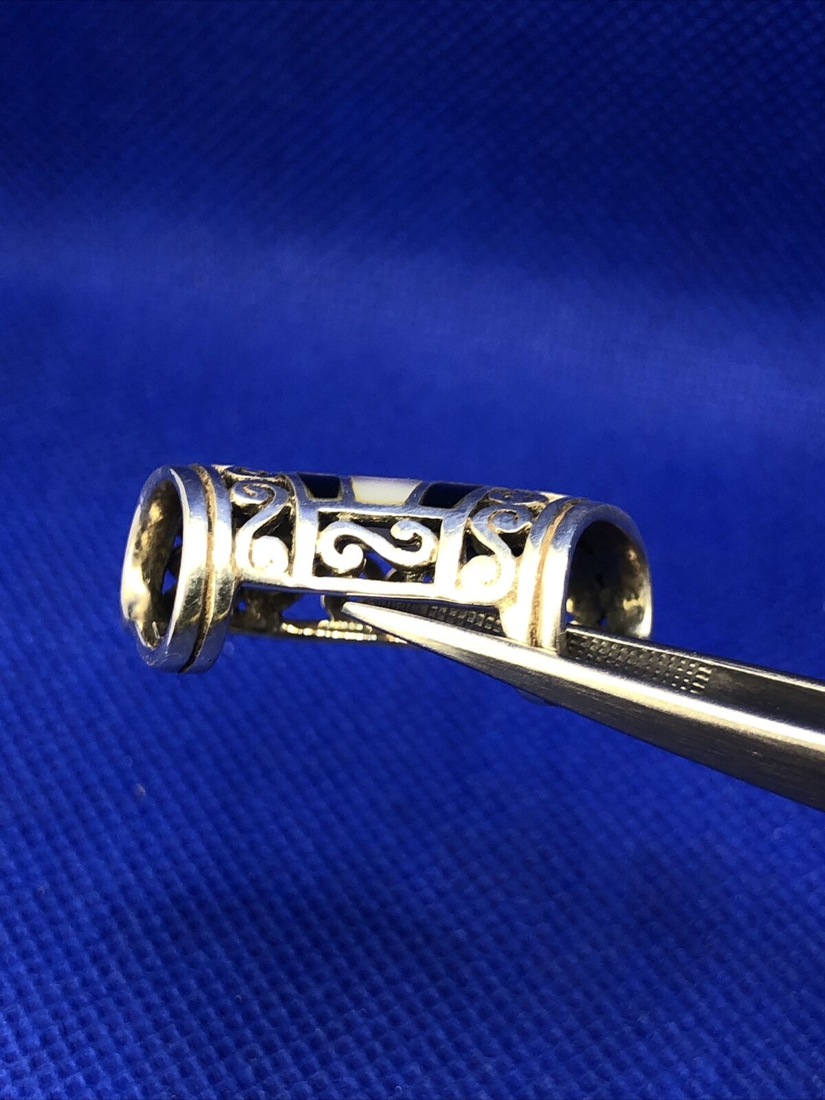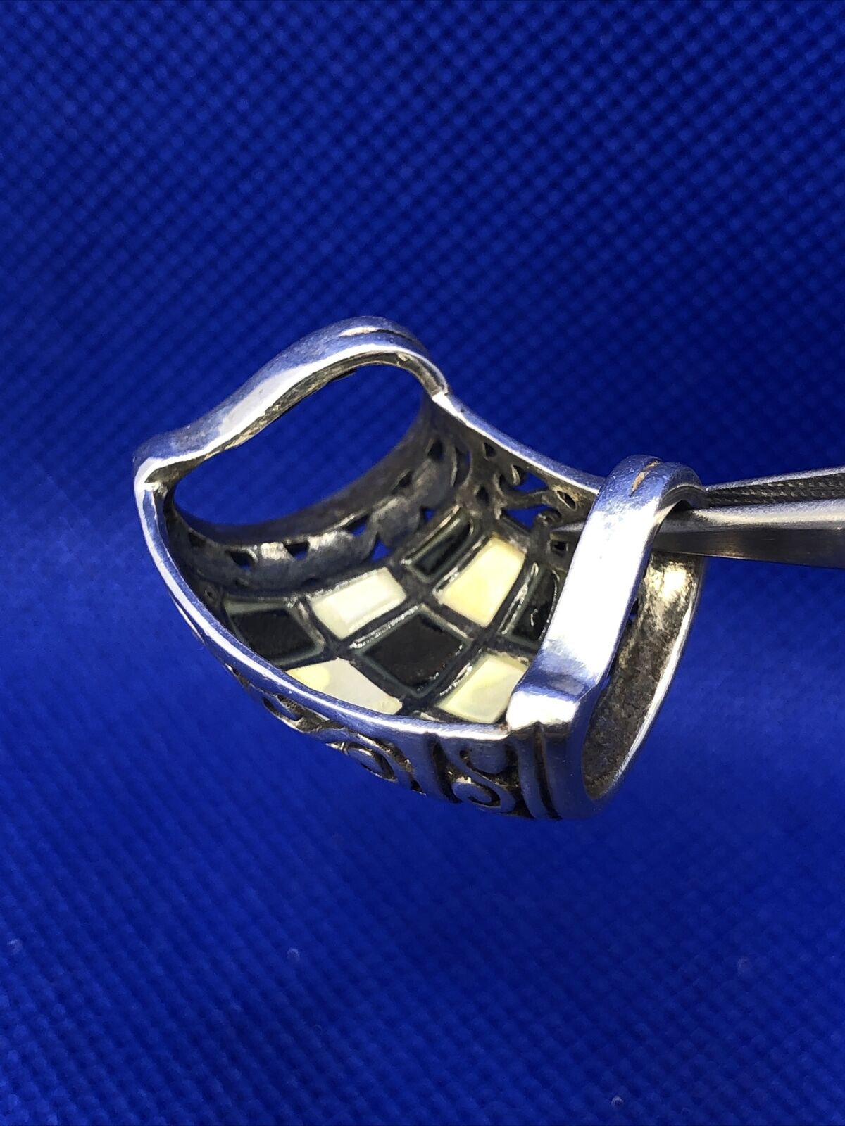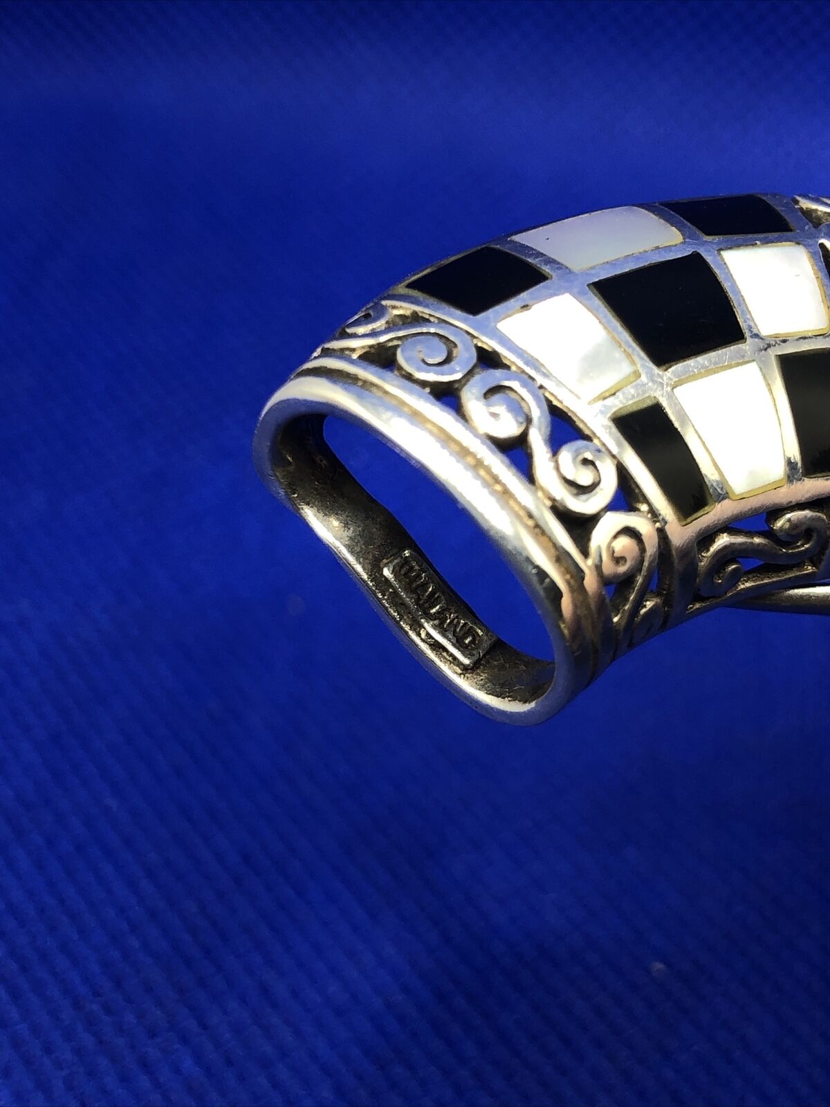 SX Black Onyx & Mother of Pearl Inlay 925 Sterling Silver Statement Pendant
