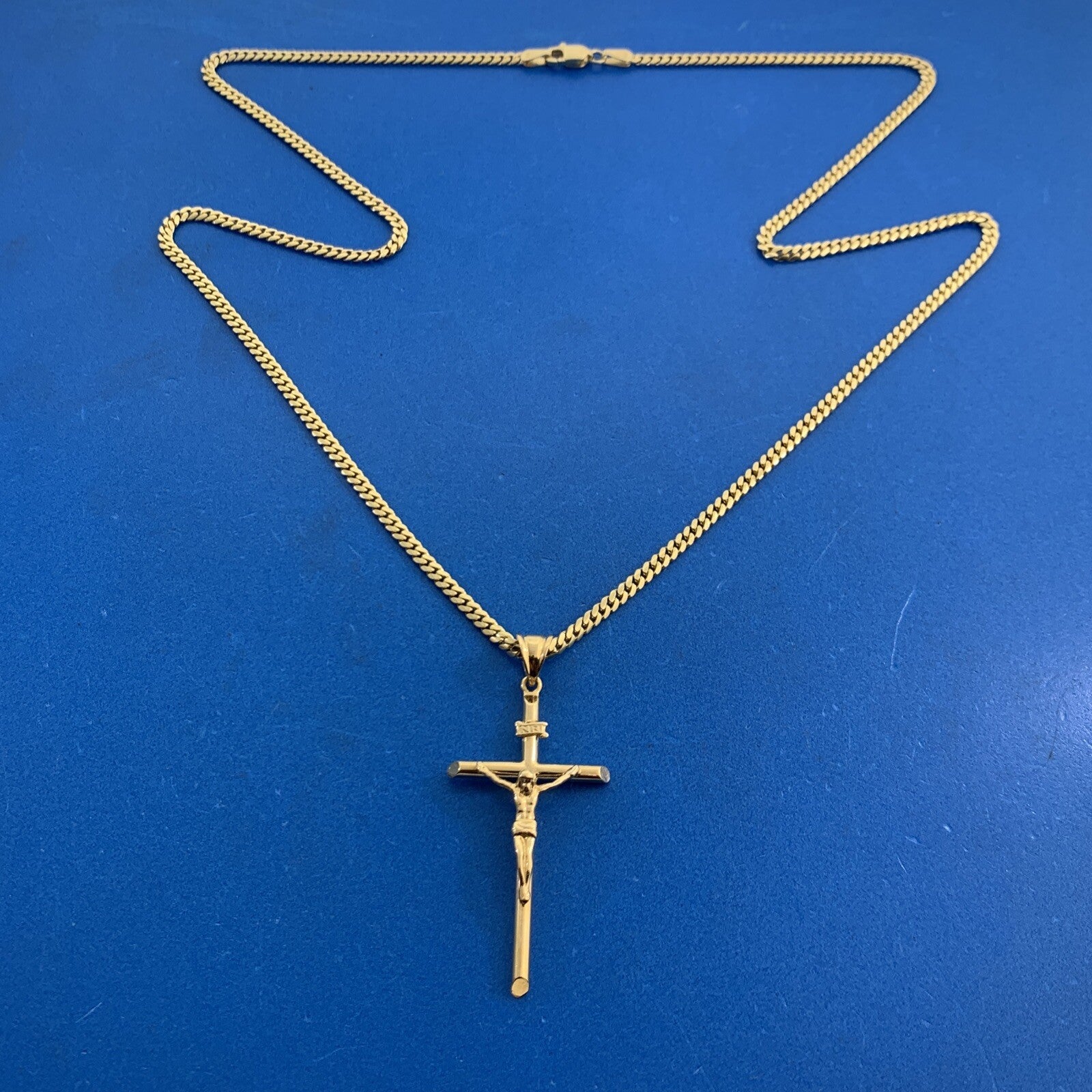 - The Gold Gods 14K Yellow Gold Crucifix Cross Unisex Religious Statement Necklace