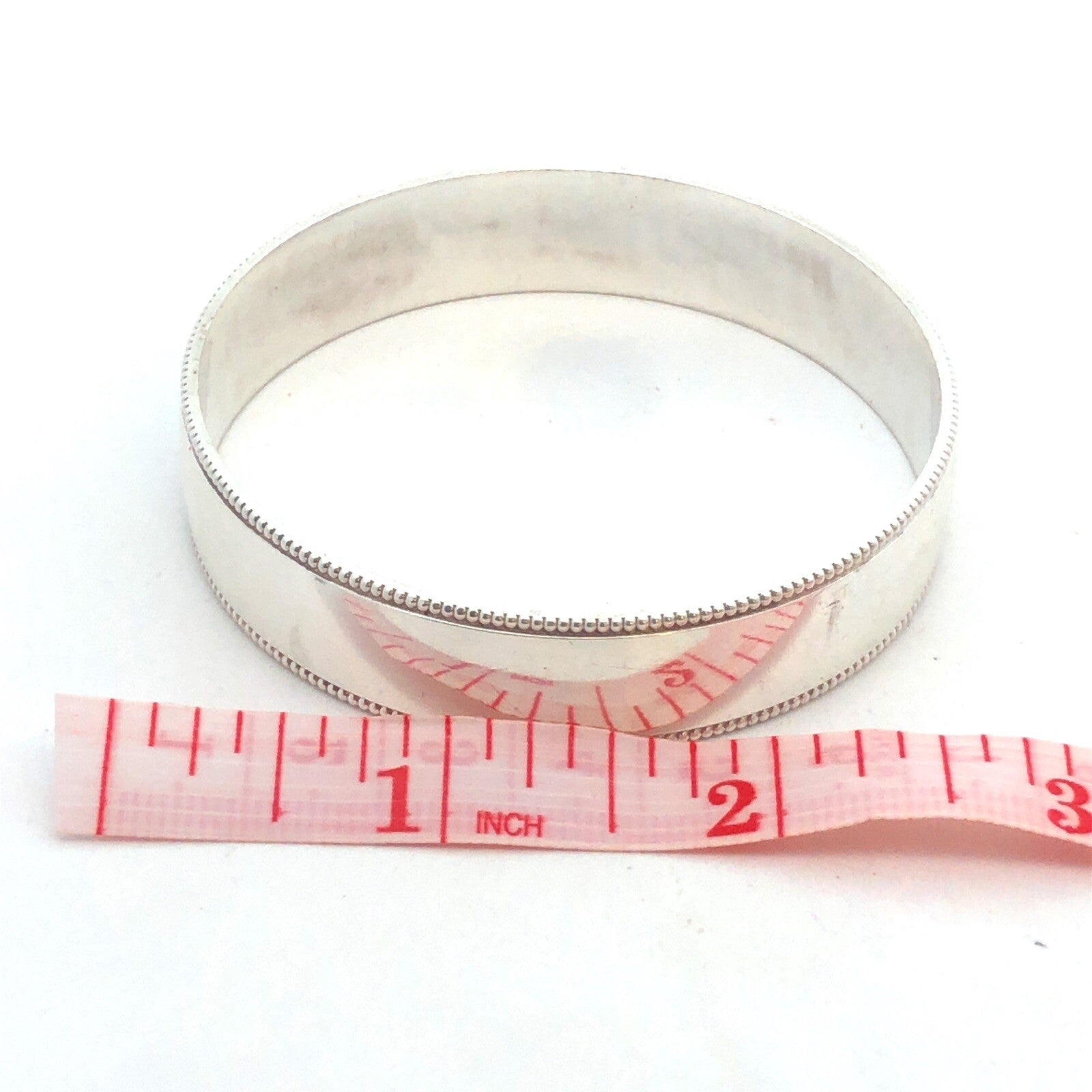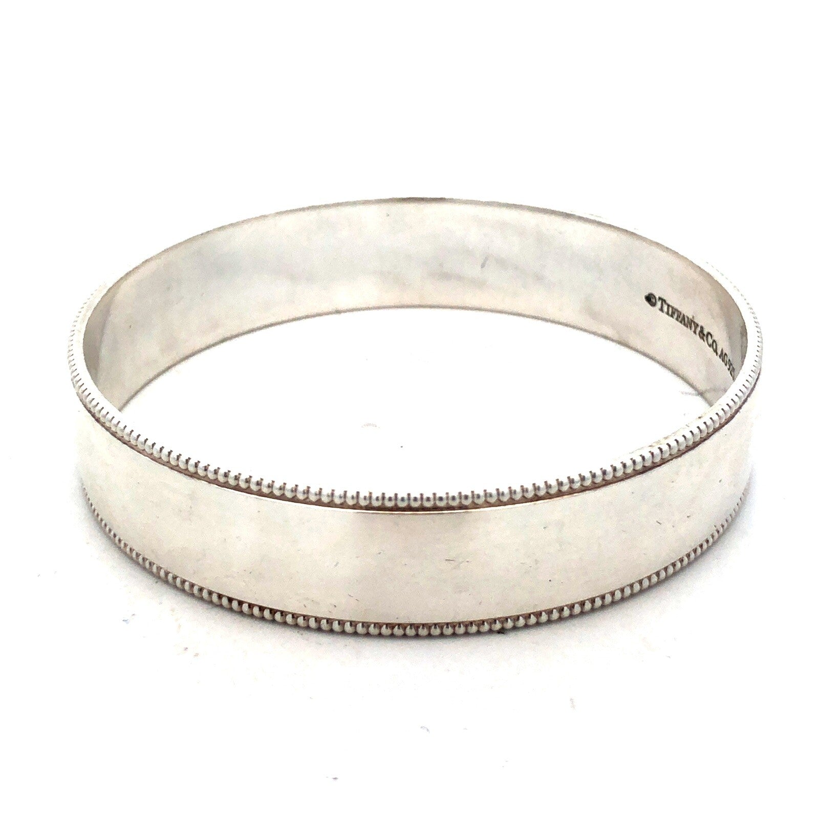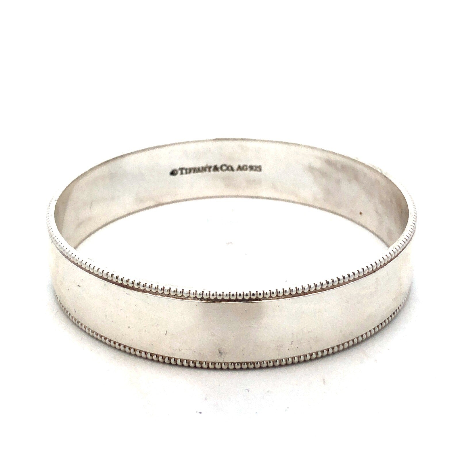 - Tiffany & Co 925 Sterling Silver Ribbed Milgrain Polished Wide Bangle Bracelet