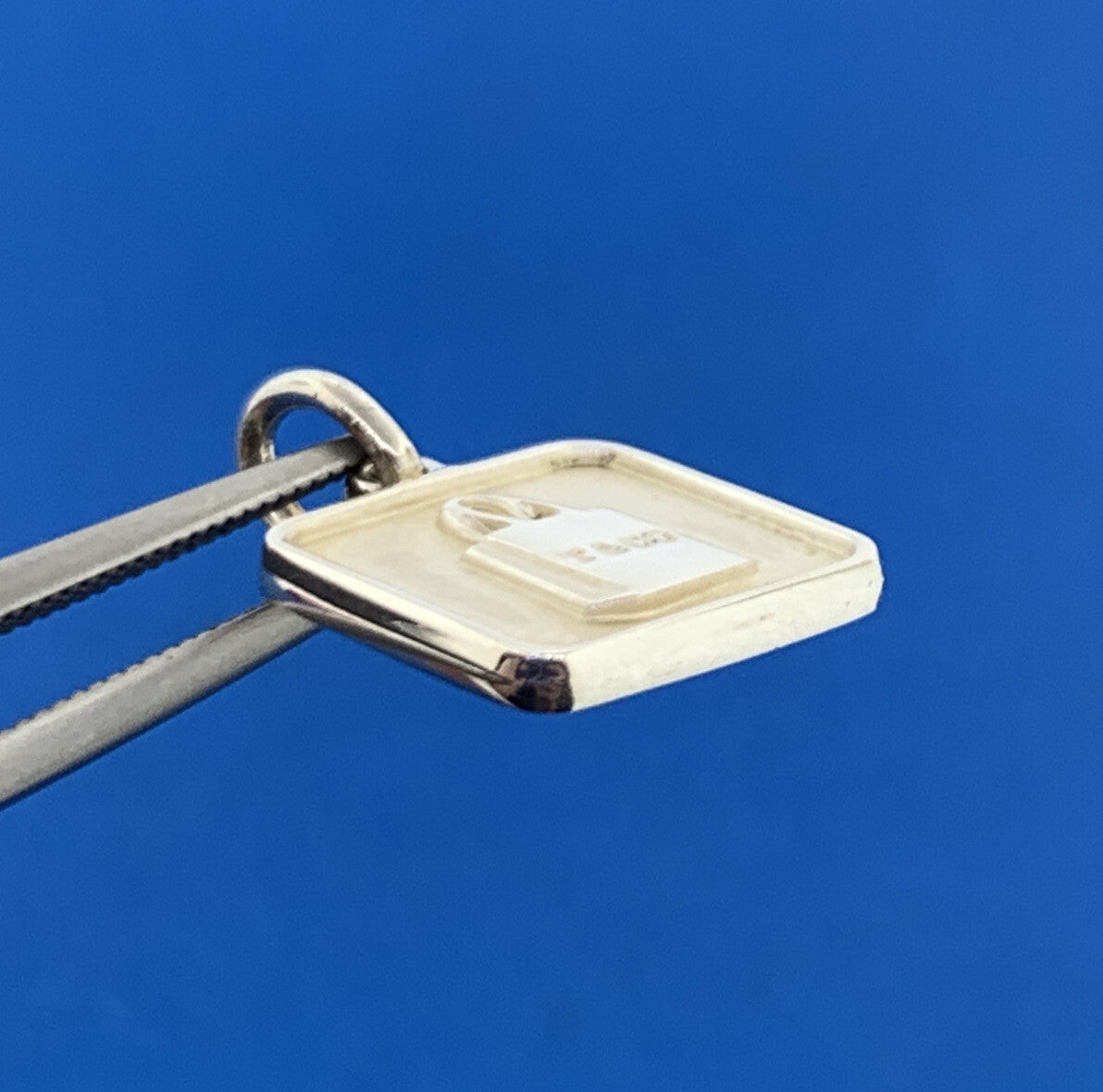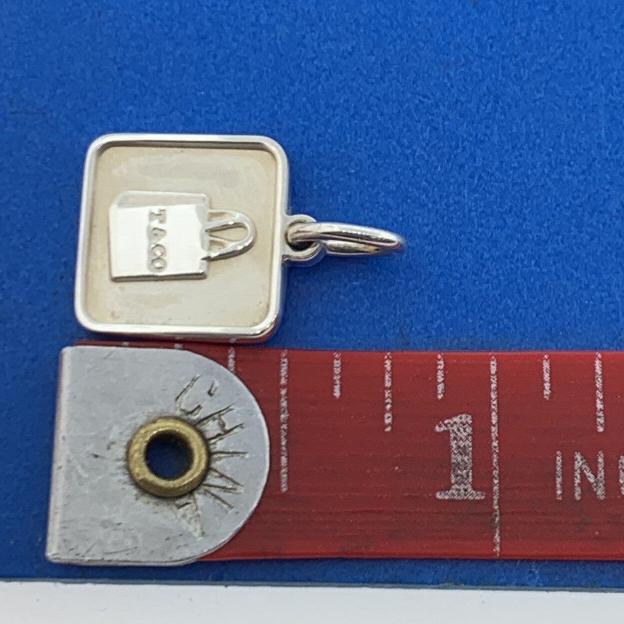 Tiffany & Co 925 Sterling Silver Square Disc T&Co Shopping Bag Charm Pendant