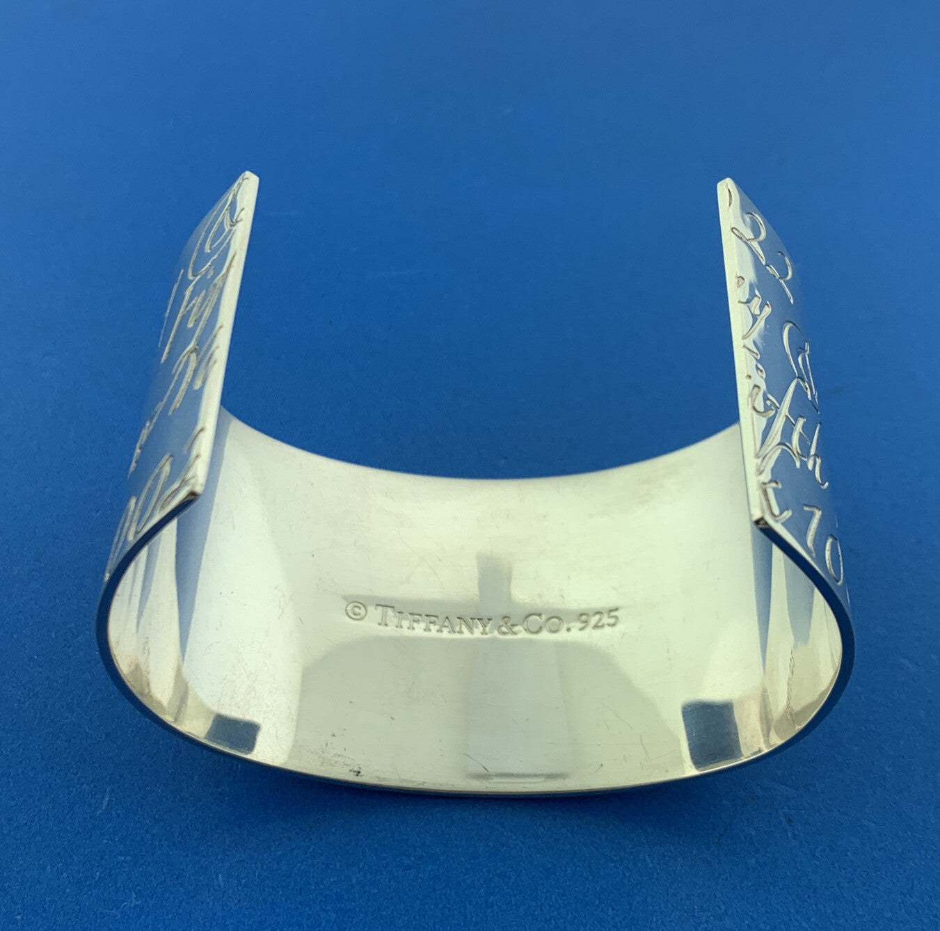 - Tiffany & Co Sterling Silver Notes Collection Wide Script Cuff Bracelet