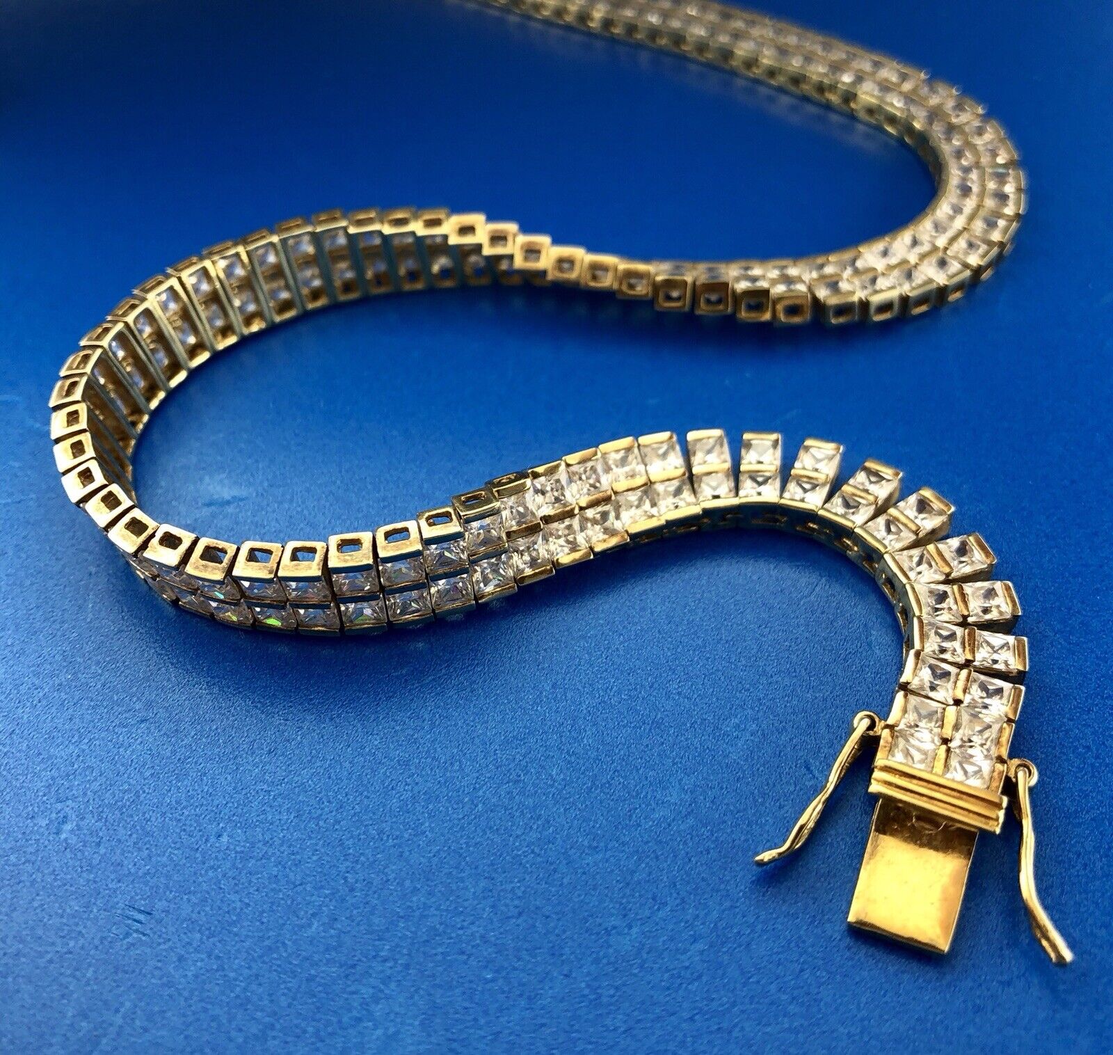 - Vermeil Sterling Silver 925 Cubic Zirconia CZ Statement Collar Choker Necklace