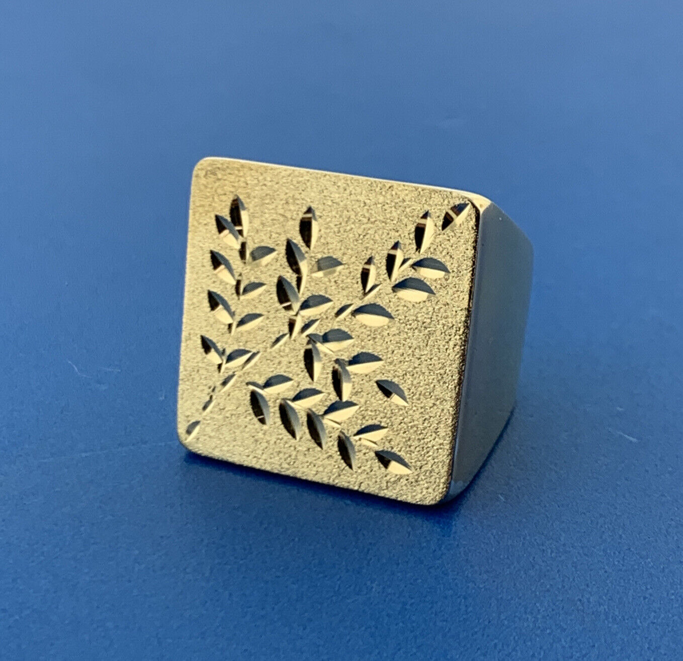 Veronese Italy 925 Sterling Silver Vermeil Florentine Polished Leaf Etched Ring