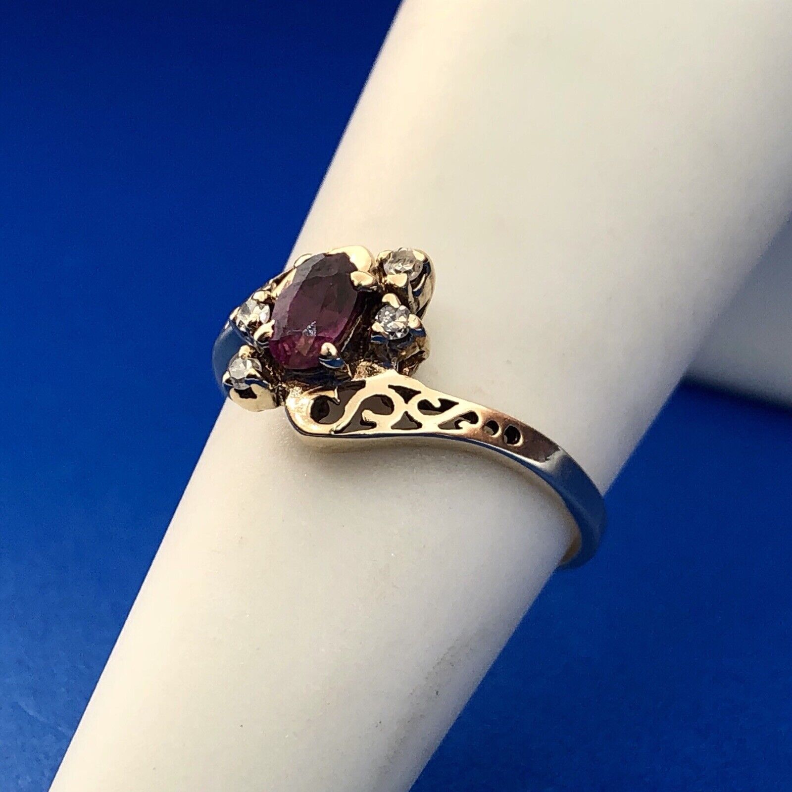 Vintage 10K Yellow Gold Garnet Diamond January Anniversary Bypass Ring
