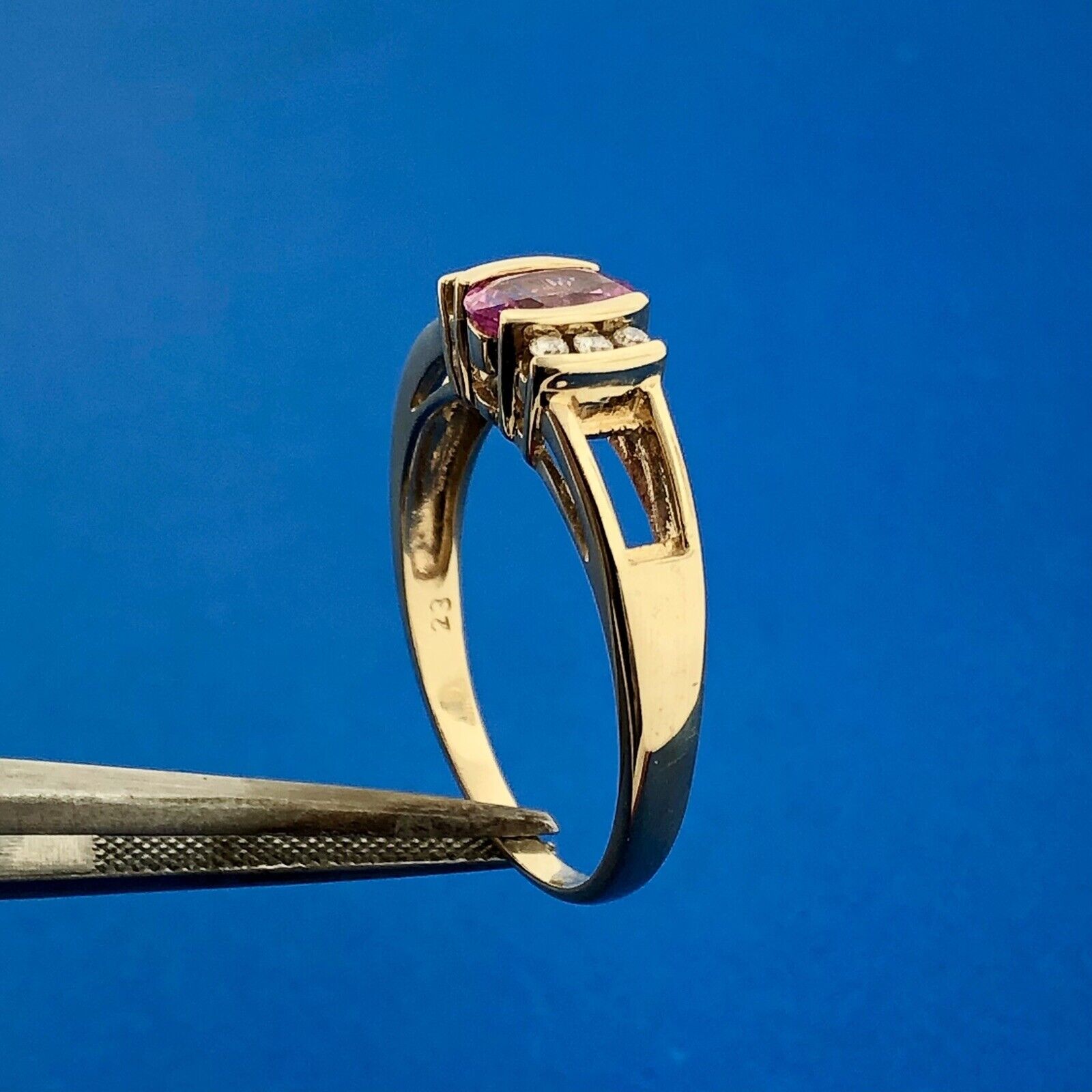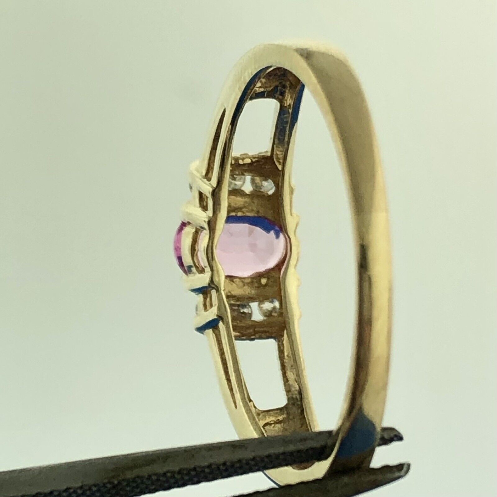 Vintage 10K Yellow Gold Oval Pink Sapphire Diamond Accent Cocktail Ring