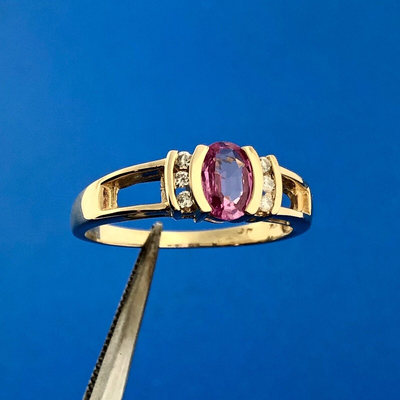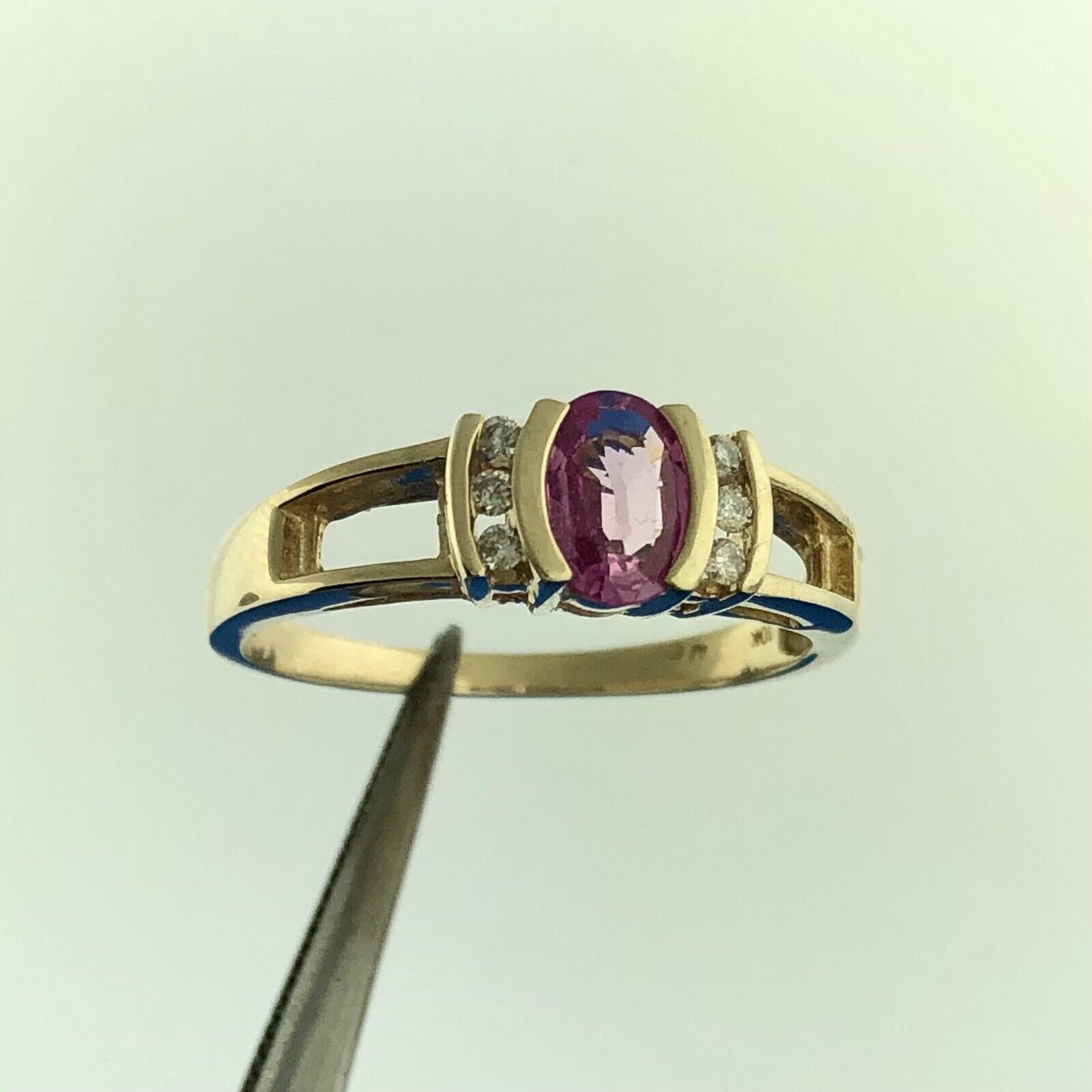 - Vintage 10K Yellow Gold Oval Pink Sapphire Diamond Accent Cocktail Ring