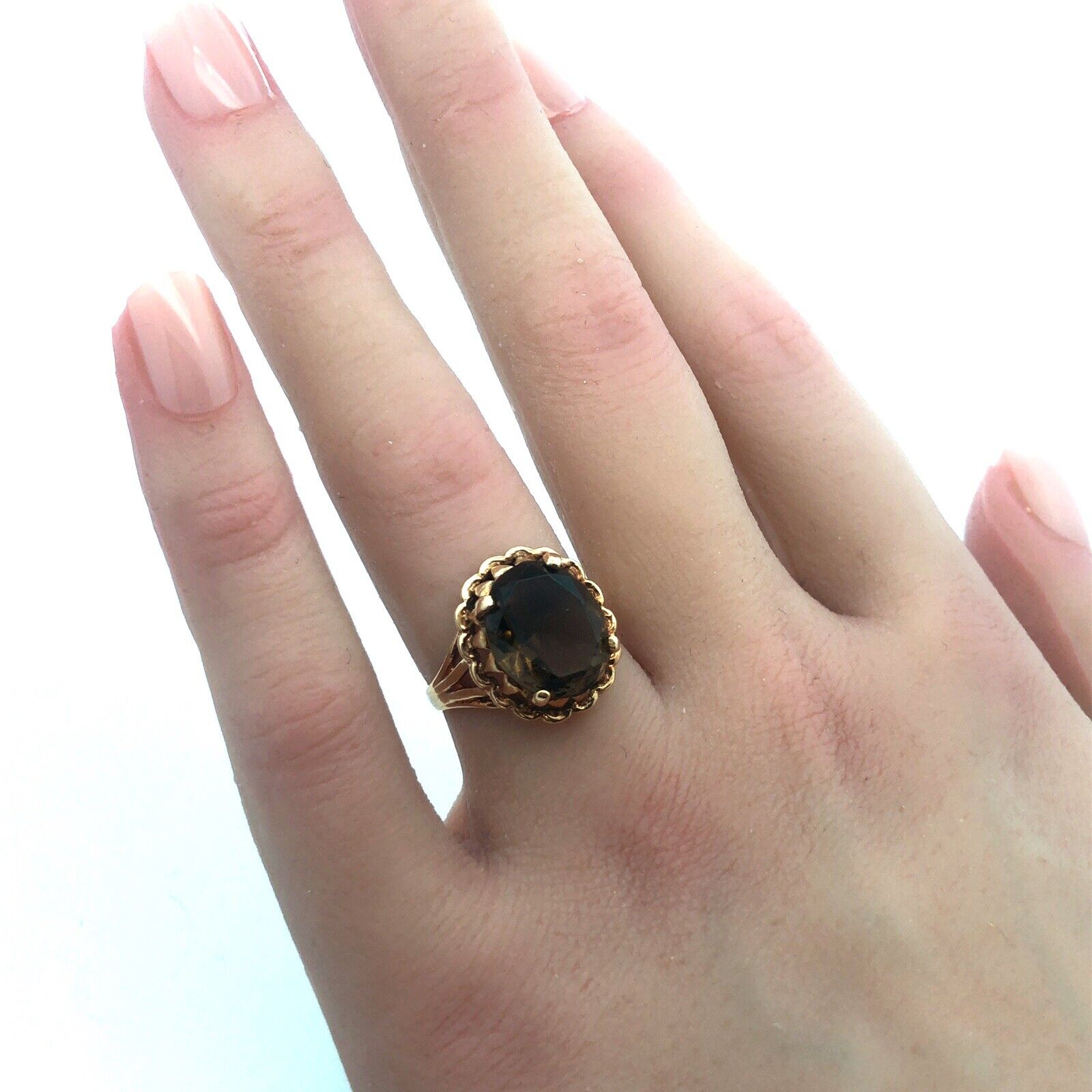 - Vintage 10K Yellow Gold Oval Smoky Topaz Statement Cocktail Ring