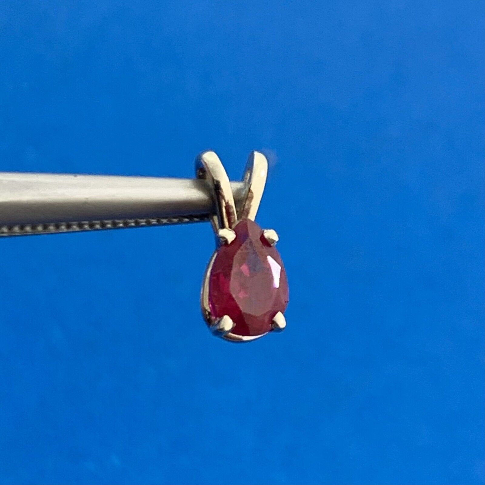 - Estate 14K White Gold Pear Ruby Solitaire Petite Drop Pendant