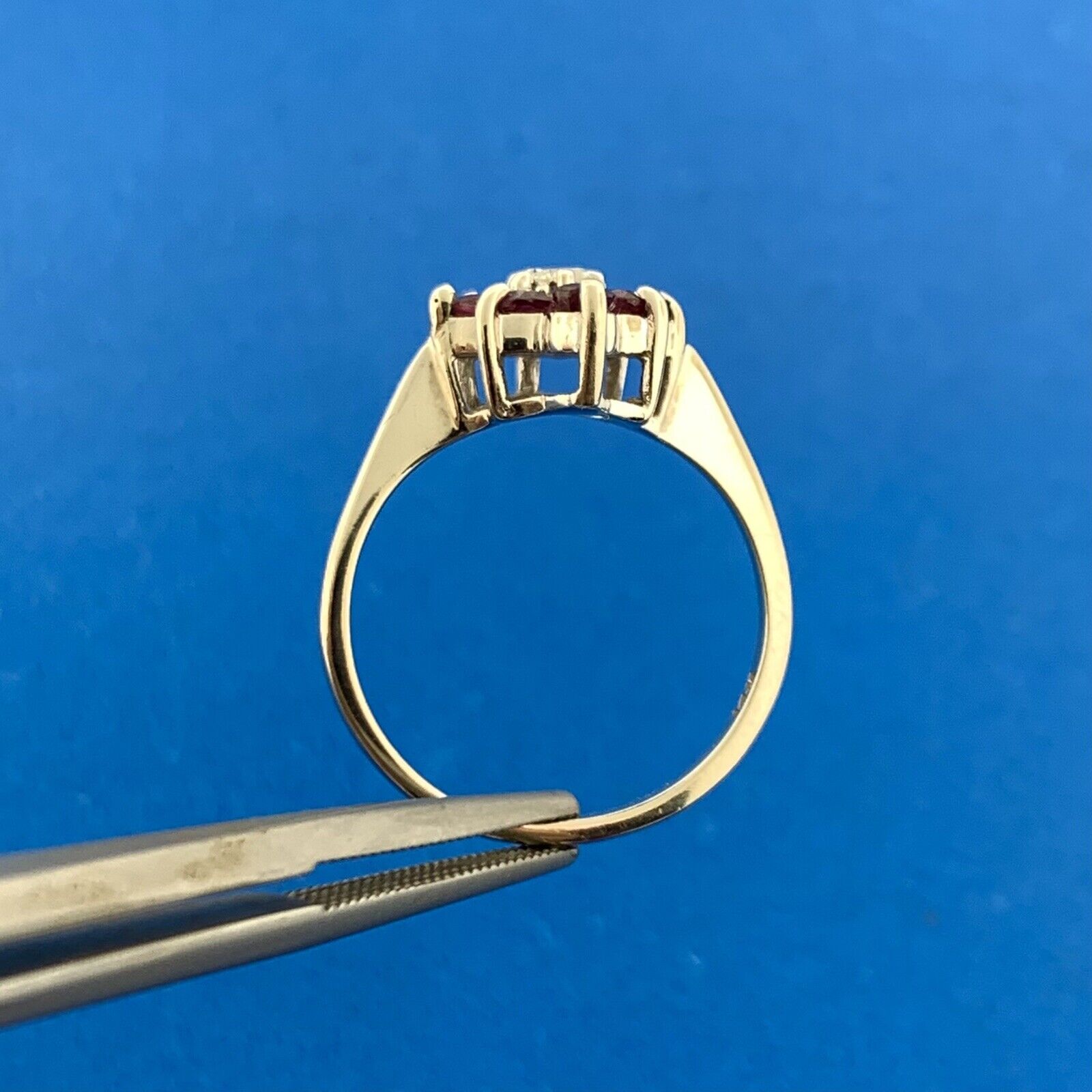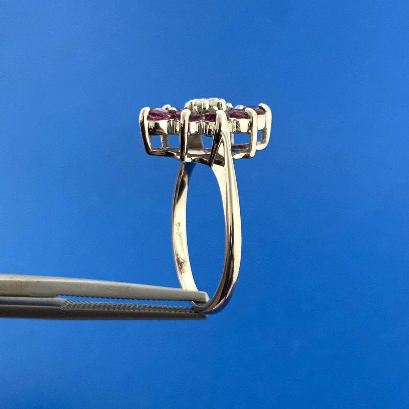 - Vintage 14K White Gold Ruby Diamond Marquise Floral Cluster July Anniversary Ring