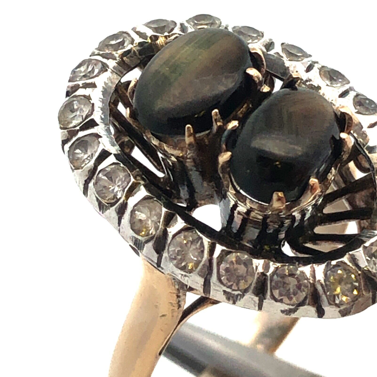 Vintage 14K Yellow Gold Black Star Sapphire White Amethyst Halo Cocktail Ring
